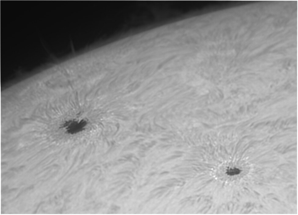 Dans mes essais d'imagerie sur le soleil en h-alpha, je constate cela pour info avec mes 85mm environ de diamètre (en partant du fait que la résolution théorique d'un instrument est de 0,252xlongueur d'onde en nm/diamètre en mm soit 0,252x656/85=1,94"/pixel).
