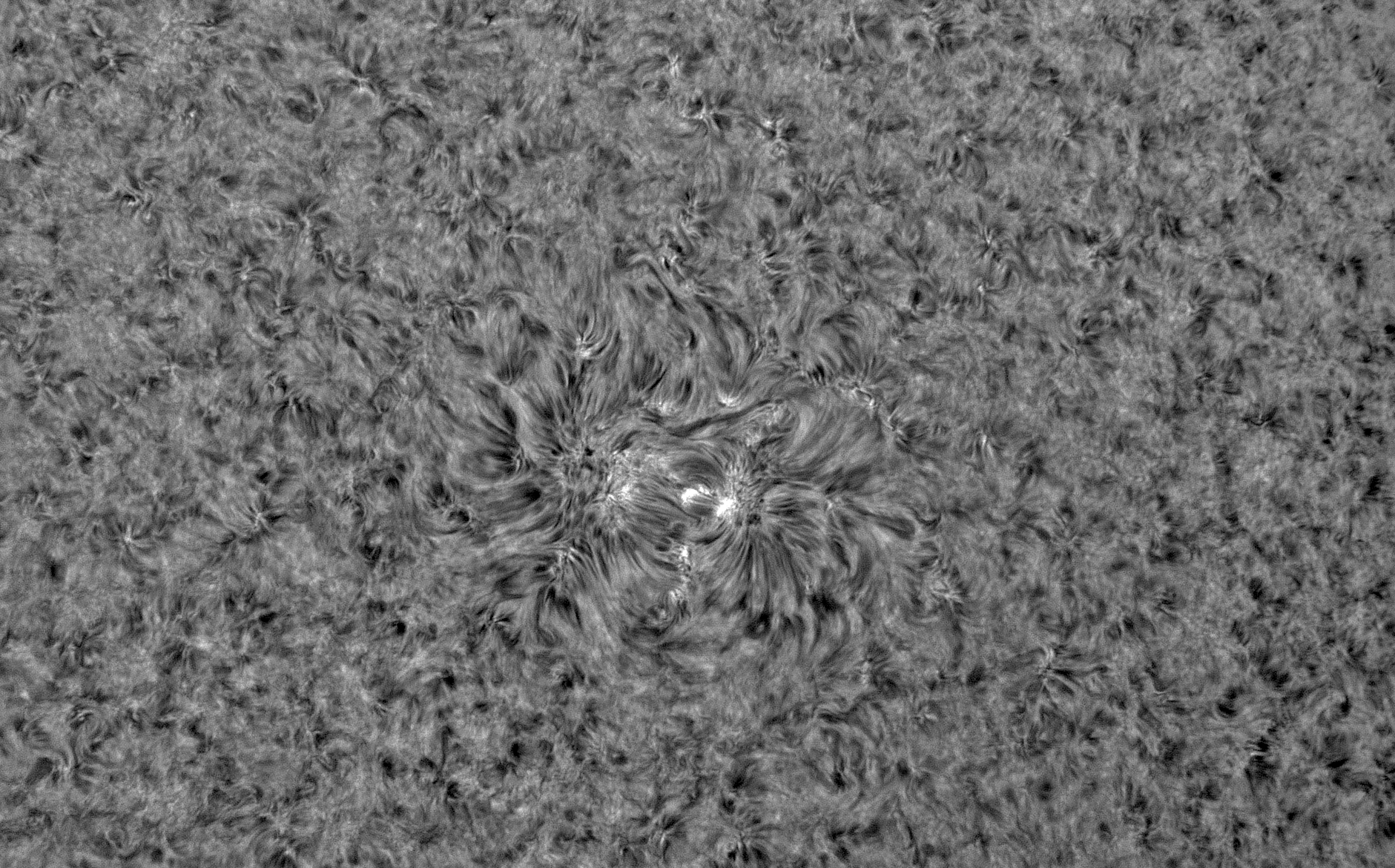 Un limbe solaire bien plus calme qu'hier mais une surface un peu plus active.