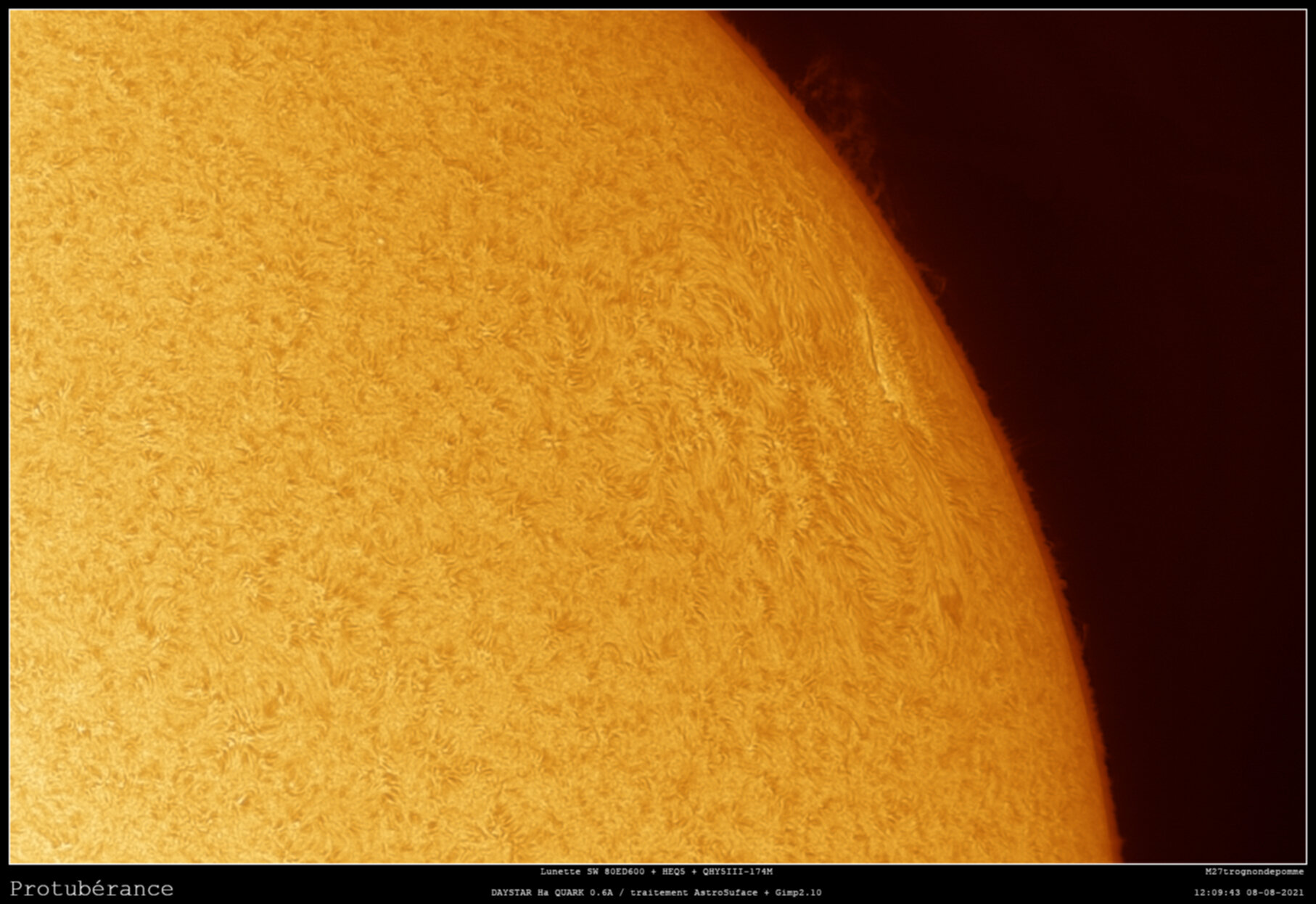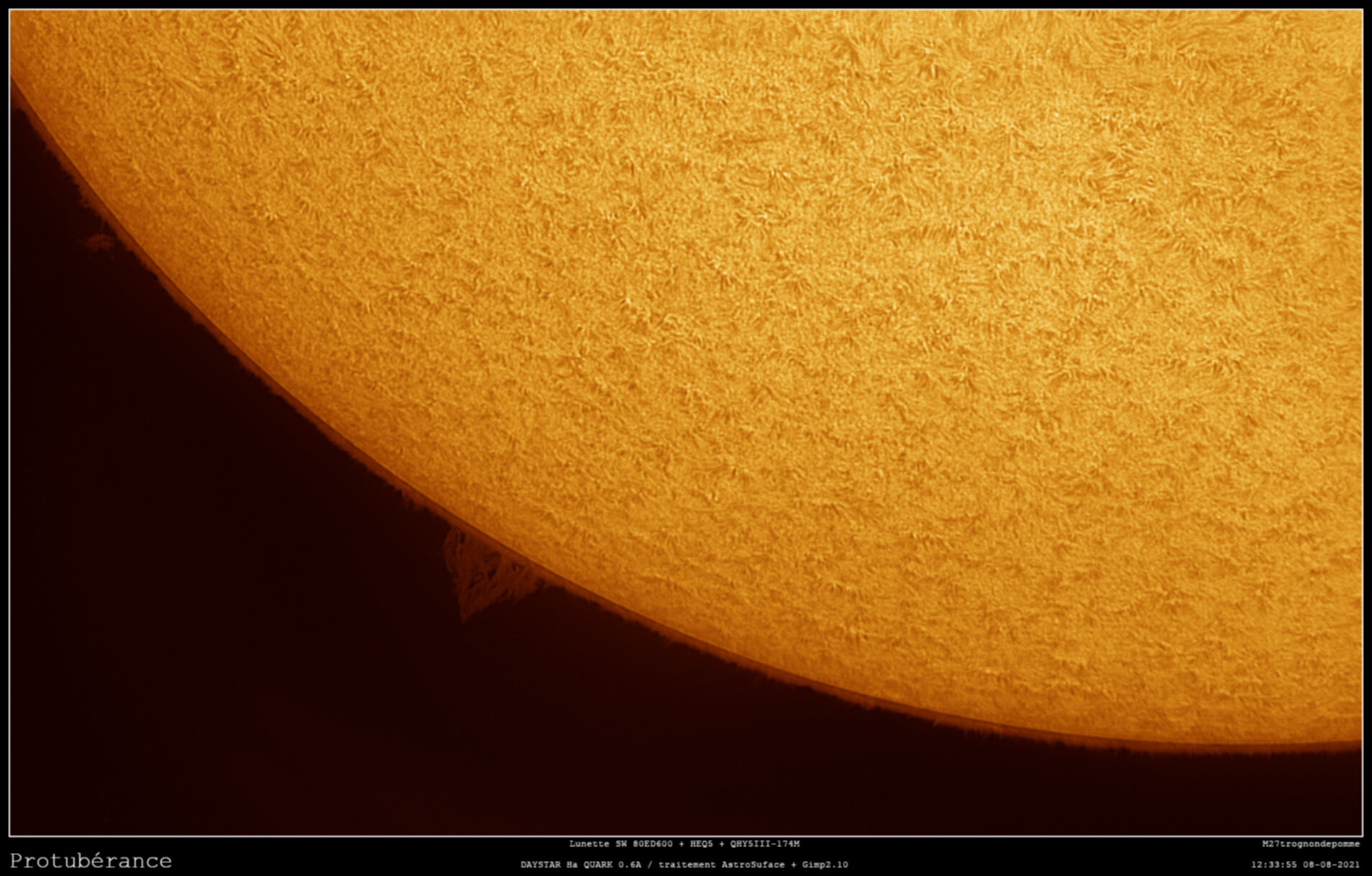 une petite image de notre étoile à la fs60 muni de son sm40 double stack, BF10, glasspath x1.7 et zwo178mm vers 13h25 HL ce 12 Aout