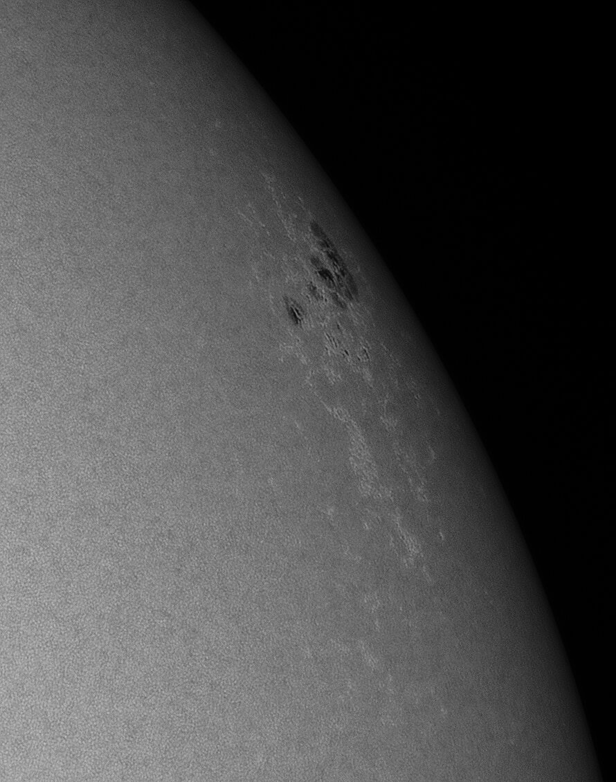 En tout début d'après-midi, les nuages sont arrivés mais je voulais étrenner un nouveau setup pour faire le soleil: une 80ED avec astrosolar 3.8 et filtre continuum (j'ai rajouté un filtre IR block dans le doute).