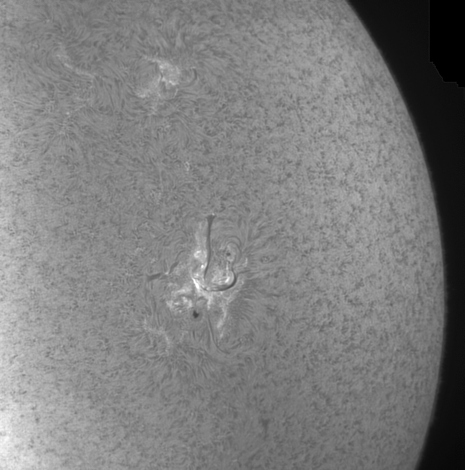 Hier matin,  il y avait un beau soleil. Je  me suis dit chouette pour imager les quelques tâches présentes. J'ai été un peu déçu en lumière blanche (K-Line et Continuum) :  il y avait beaucoup de turbulences et les instants sans  turbulence étaient très brefs. En Ha, ça passait  mieux :) .