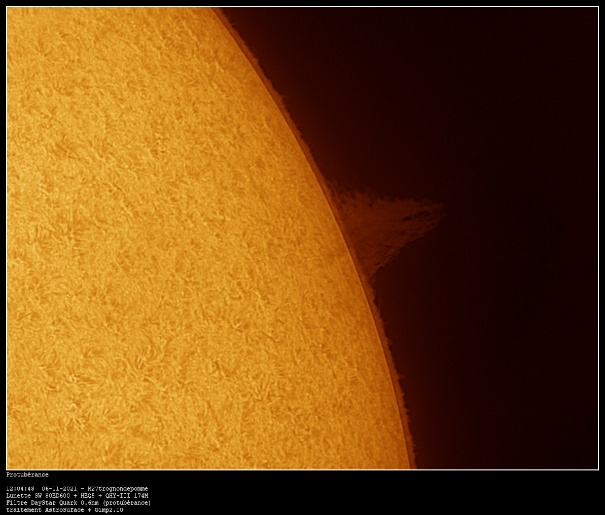 Pour le coup, j'ai battu mon record de la plus grand protubérance imagée qui datait du 16 Avril 2012 ! :D