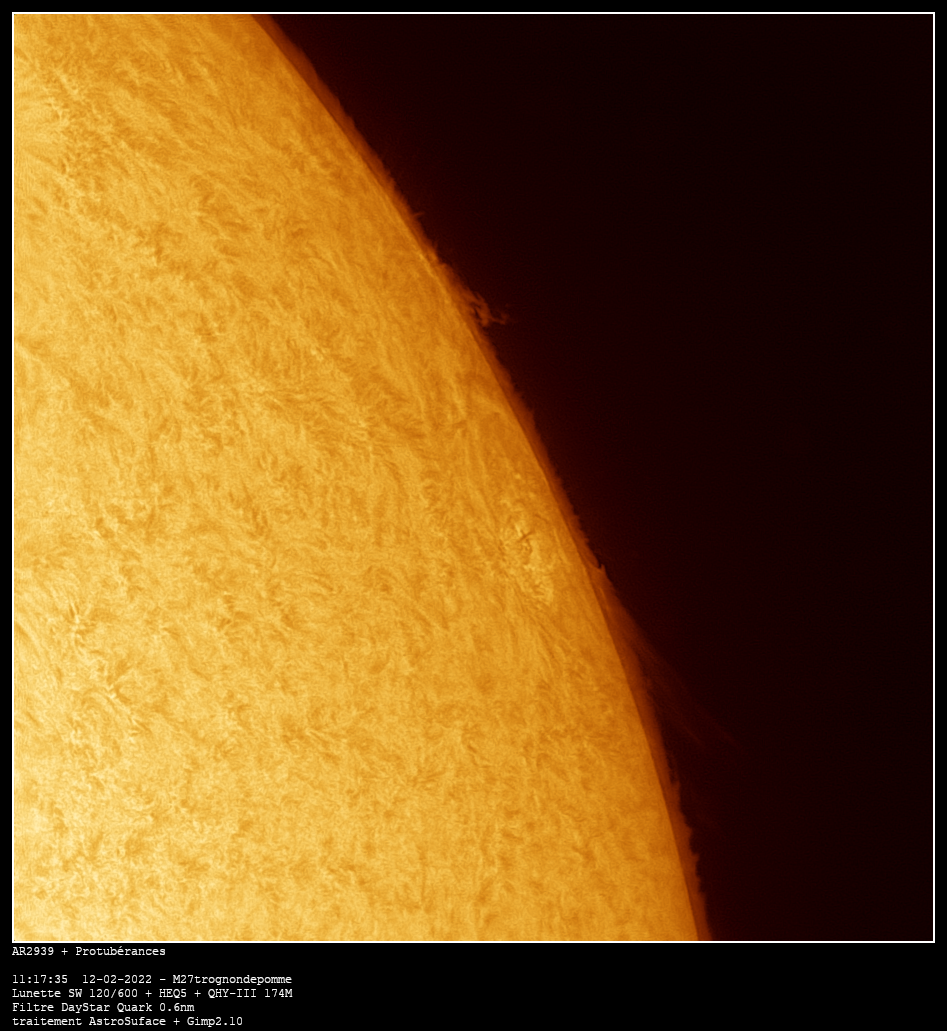 J'ai suivi les protubérances en bas à gauche à la 290 avec barlow x2 pendant environ 1h30 (après les nuages sont arrivés) , voici le timelapse (long à charger, désolé) :