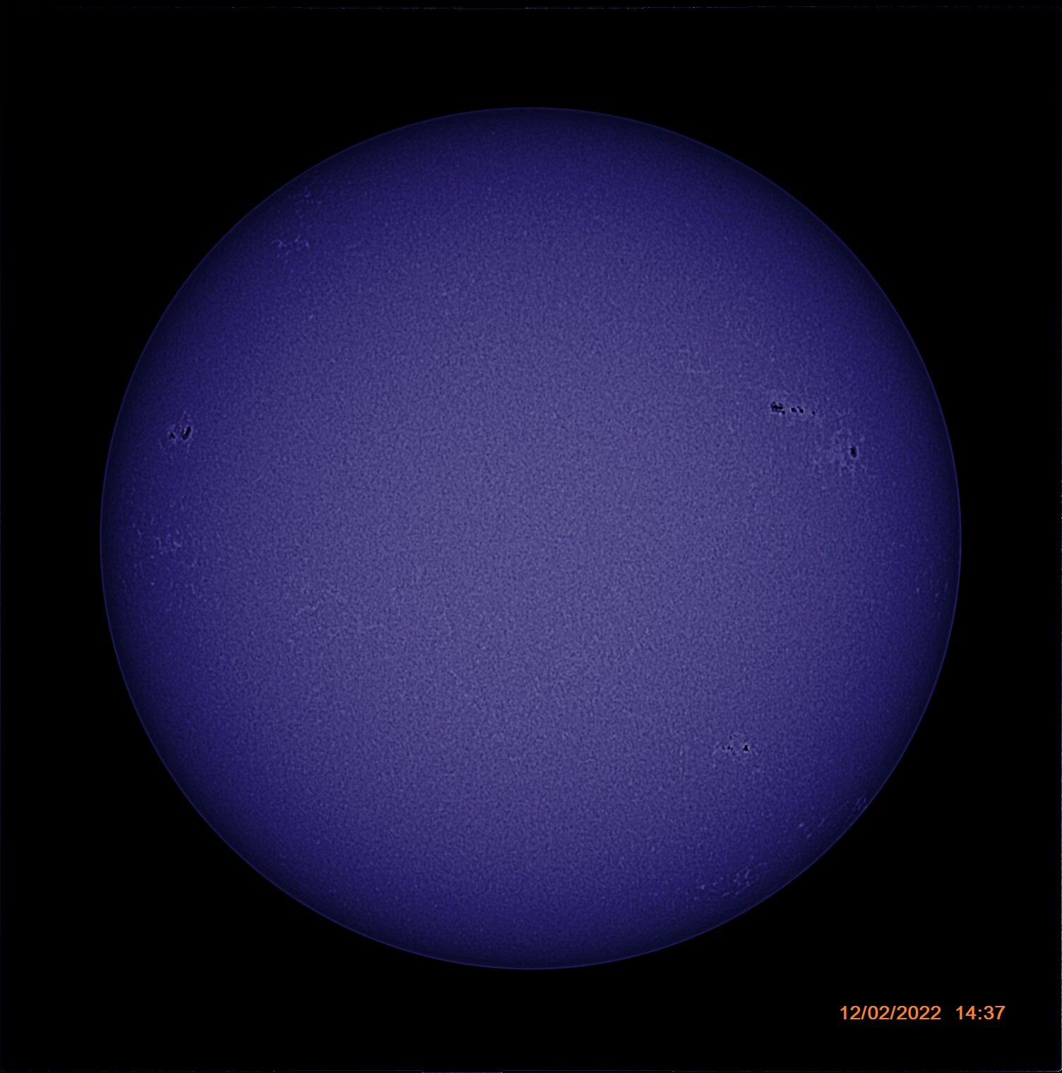 En effet. Le continuum apporte un maximum de résolution sur les taches. Le filtre violet est très légèrement meilleur que le continuum sur les plages faculaires du limbe. Mais le k-line reste très efficace pour dévoiler l’étendue réelle des plages faculaires. Moins bon par contre sur le piqué des tâches. C’est en partie naturel mais aussi en partie dû à sa faible transmission qui m’oblige à faire des concessions sur la résolution d’image.