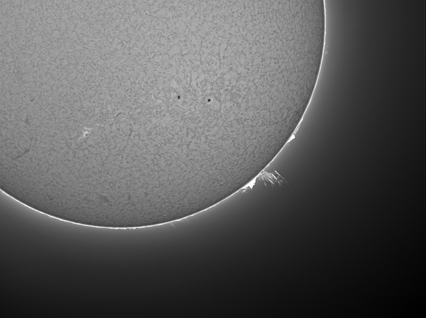 le weekend n'a pas été terrible. J'ai tenté cet après- midi dans les trouées nuageuses. Il n'y avait pas beaucoup de tâches , je me suis donc concentré sur les quelques  petites  protubérances visibles: