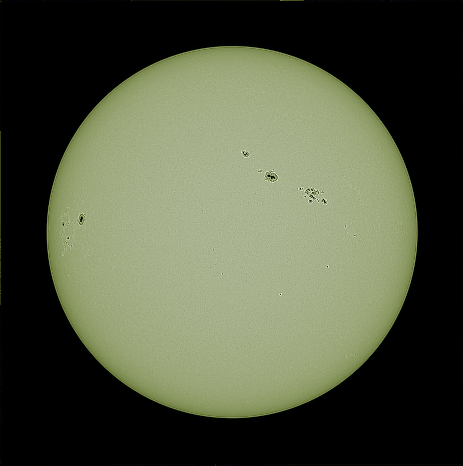 La cause du problème était en fait un contraste trop abrupt entre le disque solaire et l’environnement noir d’un côté et la surface claire tranchante avec l’ébène des taches solaire de l’autre. En gros, une histoire de contraste trop important avec pour effet l’apparition de ces filets blancs à la frontière entre ces zones.