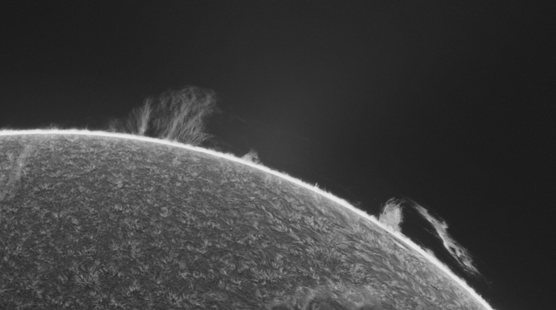 Finalement ce sera une animation de protus avec un ciel qui diffusait bien...  Mod Lunt 50 sur 100/700, ASI290MM et barlow Antares x1.5.
