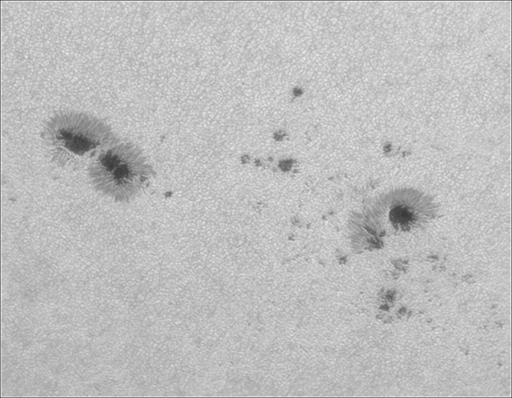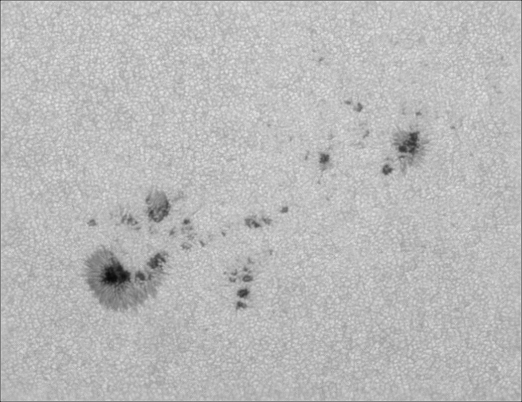 C'est sur, la tache est belle. Mais pour la granulation j'ai déjà fait mieux (voir mon image de dimanche). Aujourd'hui il y avait trop de turbulence pour pouvoir espérer plus de résolution.
