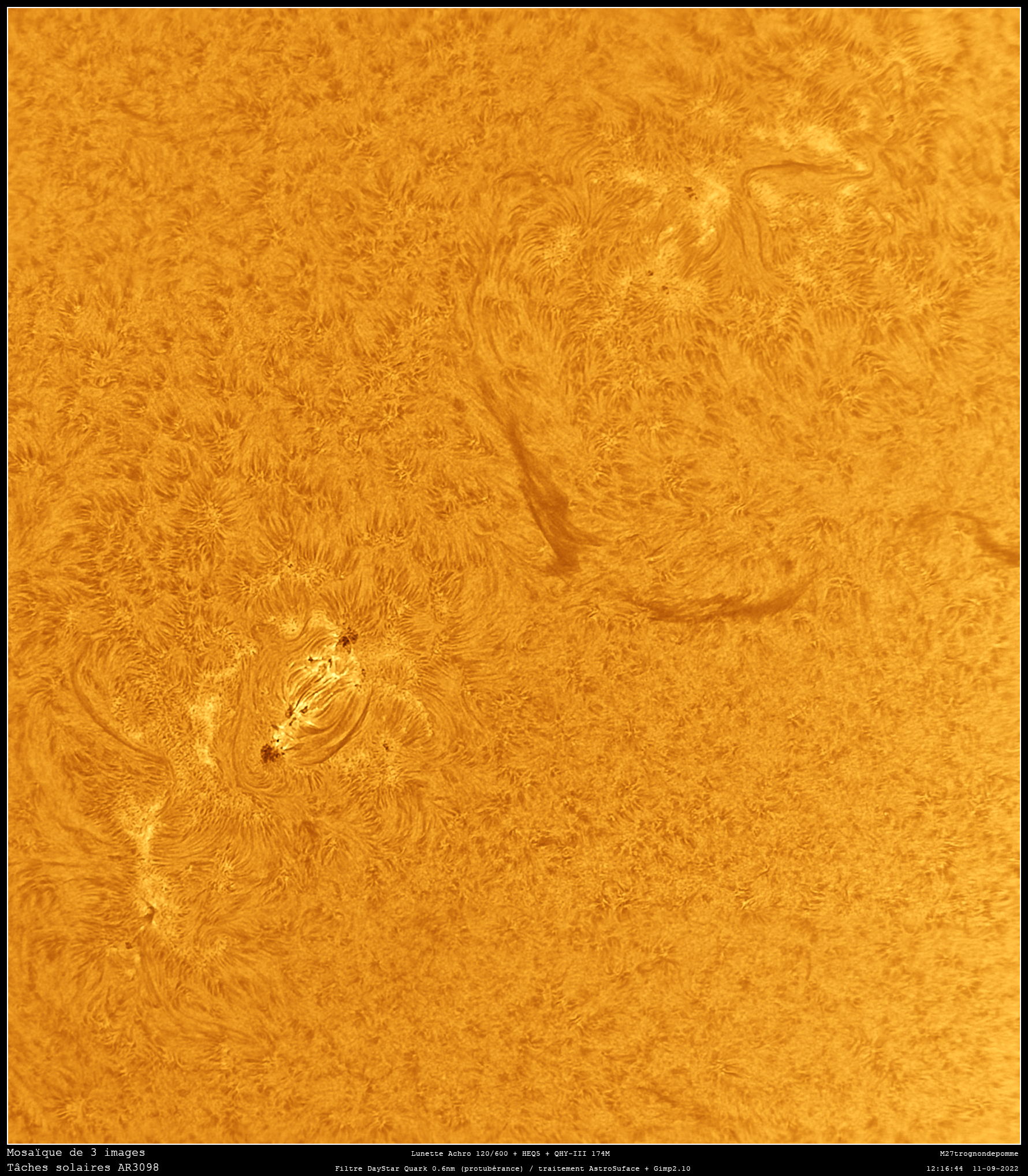 le disque complet fait au sigme 70-200 + télèconvertisseur 1.4.  la tache fait à la lunette 100/600 bridé a 80mm avec filtre UV/IR à l'ouverture.