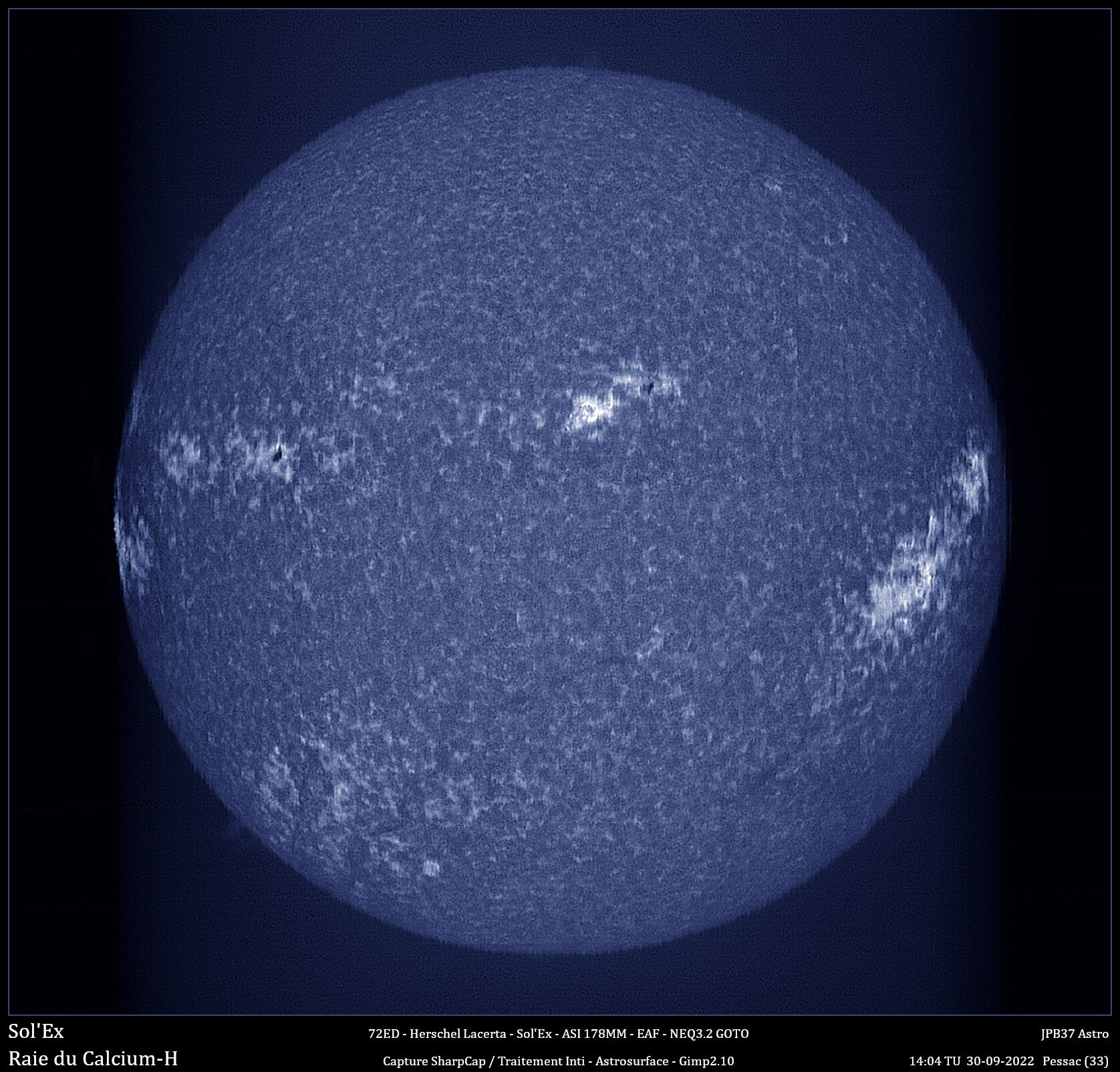 Avec un peu de retard ( mais bon, pas de précipitations, il pleut… ), mes versions perso du Soleil au continuum et au calcium k-line, toujours au SW 150/750 + APN EOS 90D avec lentille de barlow achro x2.