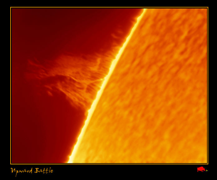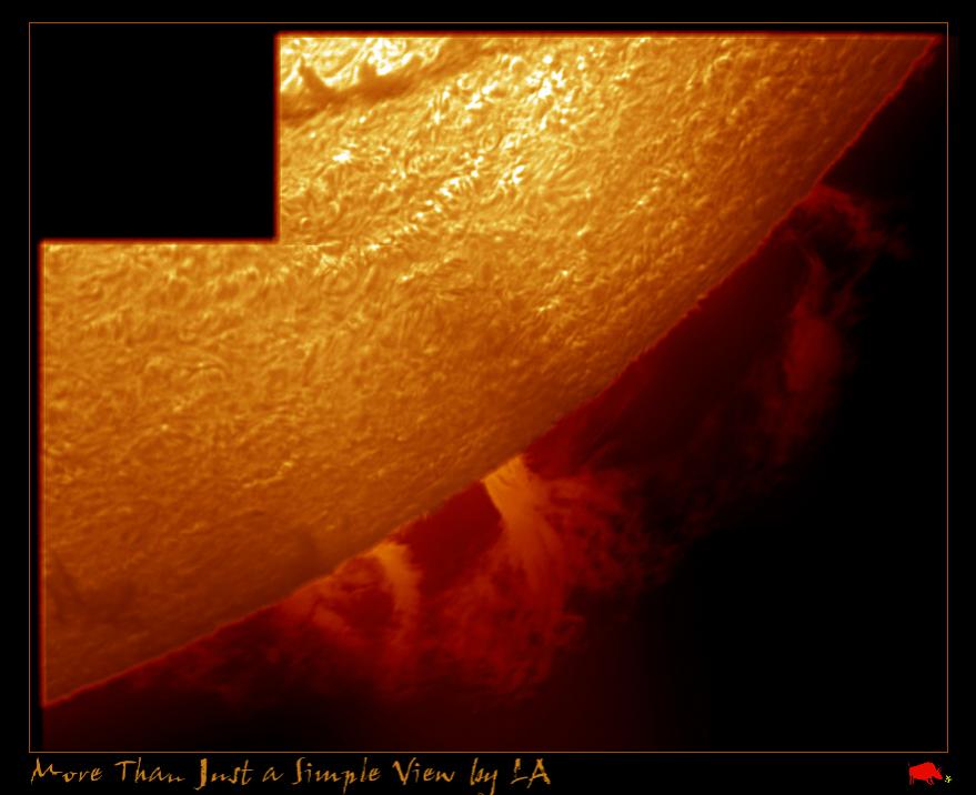 Mais personnellement, la bino c'est vraiment extraordinaire ! J'avais un grossisement équivalent à un 8mm mono et c'était encore très lumineux et contrasté : j'aurais encore pu grossir. Au passage, vers 4h il y avait une impressionnante protubérance qui s'étirait très loin, mais sûrement en fin de cycle car elle était déjà assez faible, mais belle.