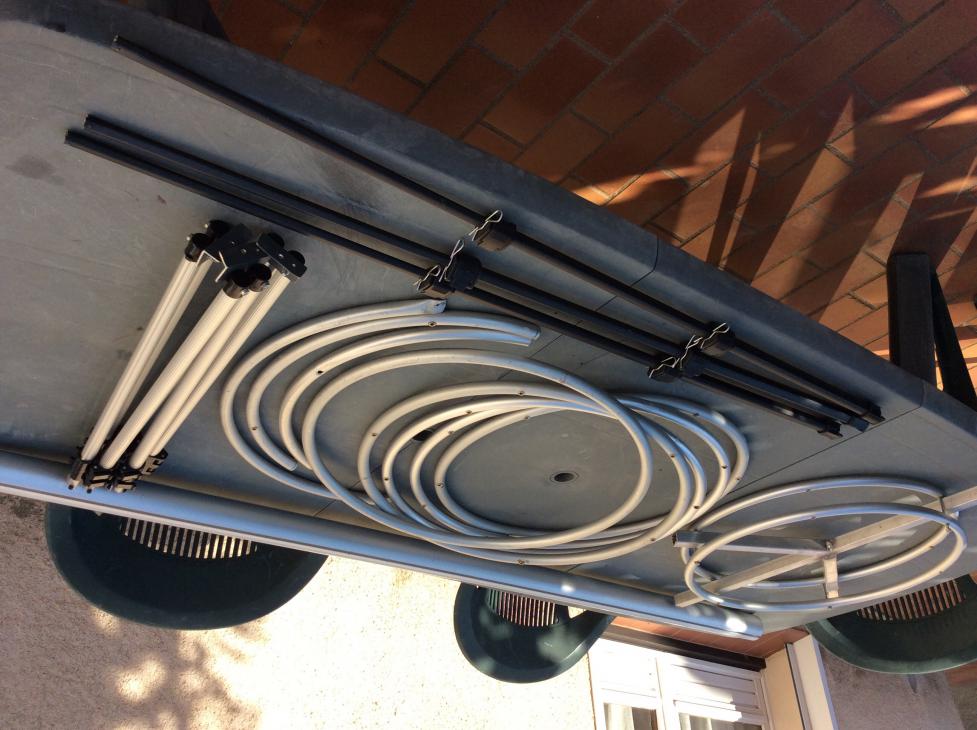 Holà Éric ,Juste par jeu car faire une structure c'est facile, tu peut arrêter quant tu venus et reprendre au même point plusieurs semaine plus tard :)curiosité de voir comment tout cela se comporte Avec du Matos de récupérer, sauf pour les tiges fillettées qui seront en haute résistance de façon à réduire leur taille et leurs poids et puis je vieillie avec un petit rêve :wub:,il me faut du ...encore plus transportable .;)