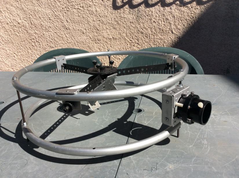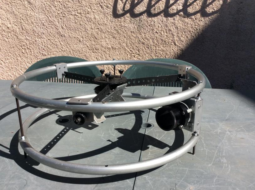 Holà tôt Homs , j' ai pas pu résister à l'envie de faire un montage a blanc avec ce que j'avais sous la main ,une petite cornière de 2 mm,et je suis agréablement surpris , même comme ça ,le test du volant (a vide) est concluant . Cerise sur le gâteau ...pour l' utilisation d'une bino ou autre changement de distance focale,il suffit de changer la longueur des barres .