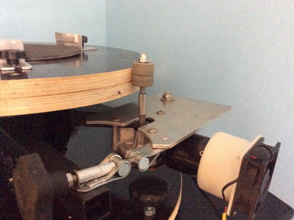 Pour la pression du galet sur le plateau,un collier que tu coupe en deux relié par une tige filetée .