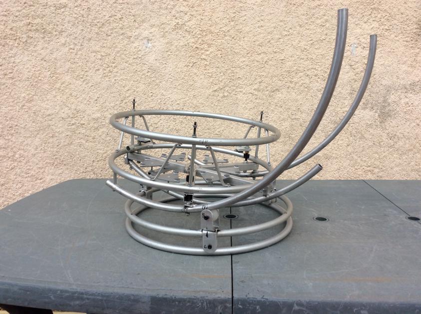 Holà , après une pt pause pour diverses raisons, reprise ... Avec les tourbillons démontables , sur la premières photos on les adaptations soudées et entretoises qui permettent le montage et sur la secondes l allures générales a laquelle il manque encore une triangulations démontables pour les tourbillons , fin aviat Will