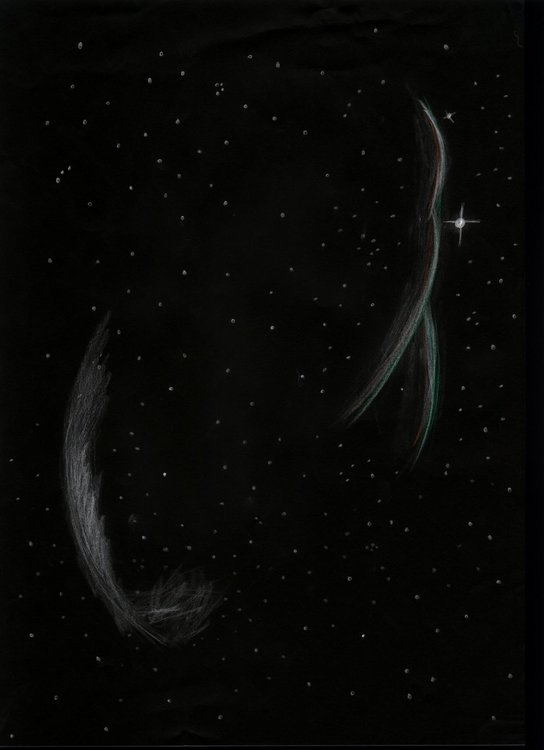 Wahou, c'est original comme dessin ! C'est intéressant : même s'il y a peu de candidats, il y a des dessins de tous types, même à l'oeil nu maintenant. Pour avoir déjà vu un bolide de ce genre (à la fin il avait explosé en une cascade de mini-bolides), je reconnais parfaitement ce que j'ai vu, il ne manque que la couleur.