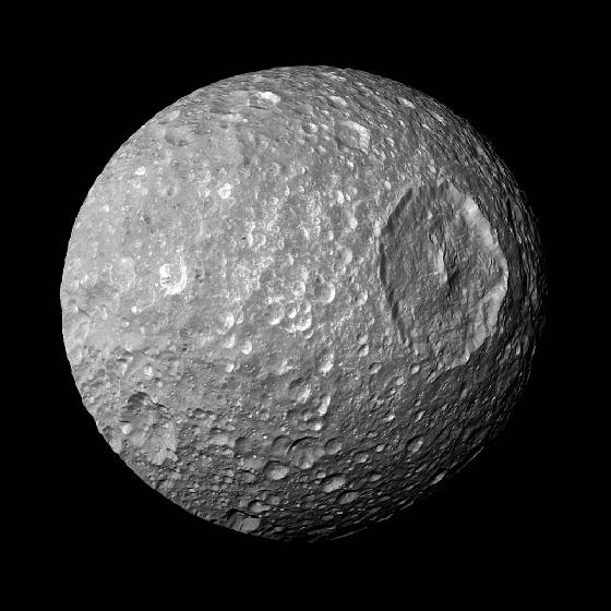 L'Étoile Noire quant à elle est large de 120km, et est dotée d'un laser destructeur de planètes d'une grandeur proportionnelle au cratère de Mimas (troublant).