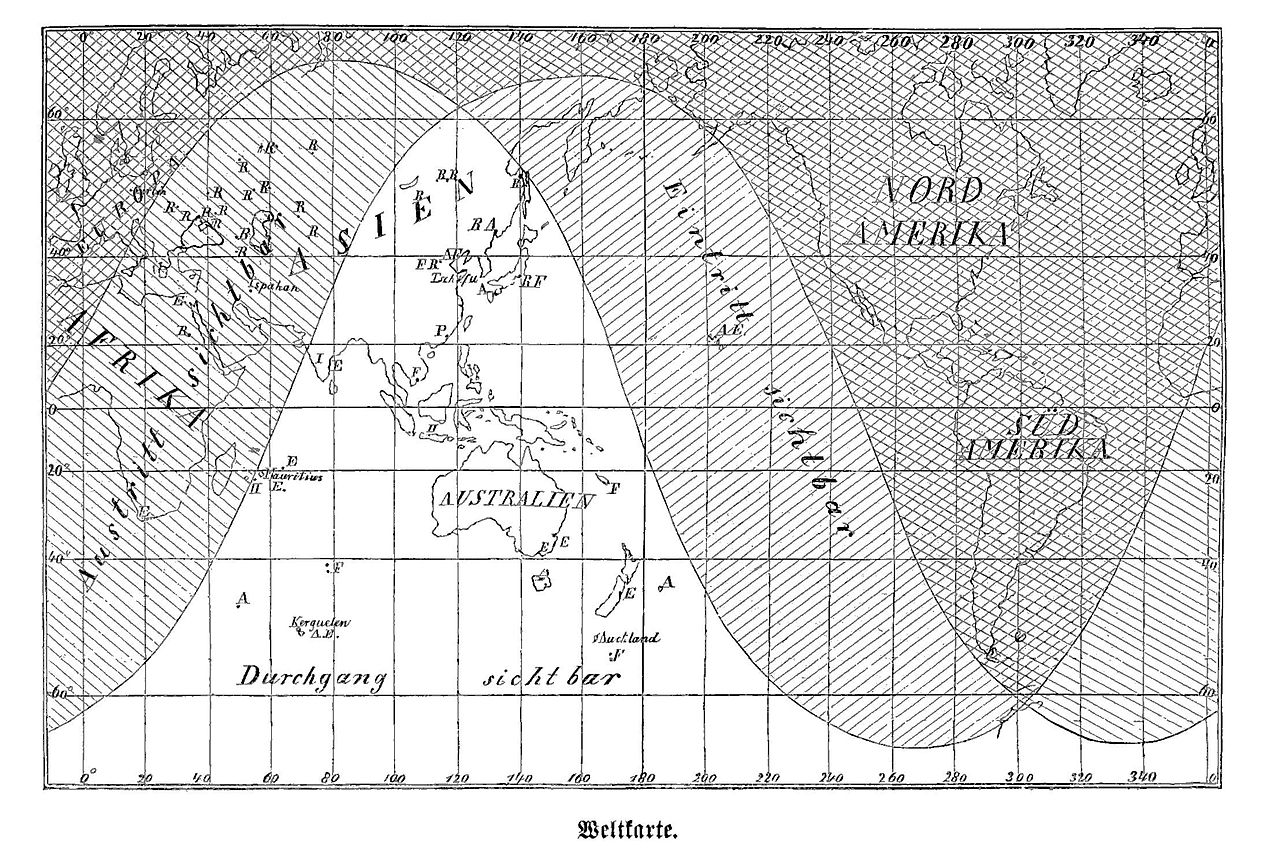 Voici comment "l’Annuaire du Bureau des Longitudes" pour 1874 mentionnait les circonstances du passage de Vénus devant le disque du Soleil le vendredi 9 décembre 1874 (page 36) :