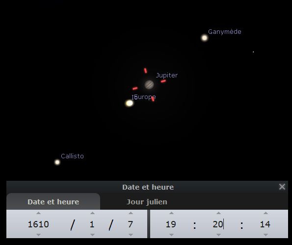 — Bonjour Mon Cher ami, vous m’avez-bien dit que c’est le jeudi 7 janvier 1610 (il y a donc exactement 406 ans aujourd’hui) que Galilée a observé en premier trois des quatre principaux satellites de Jupiter, n’est-ce pas ?