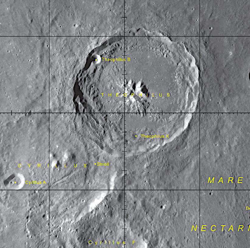 Pour Theophilius il empiete sur Cyrillus et est entouré de Mädler, Beaumont, Isidorus et Gaudibert .....