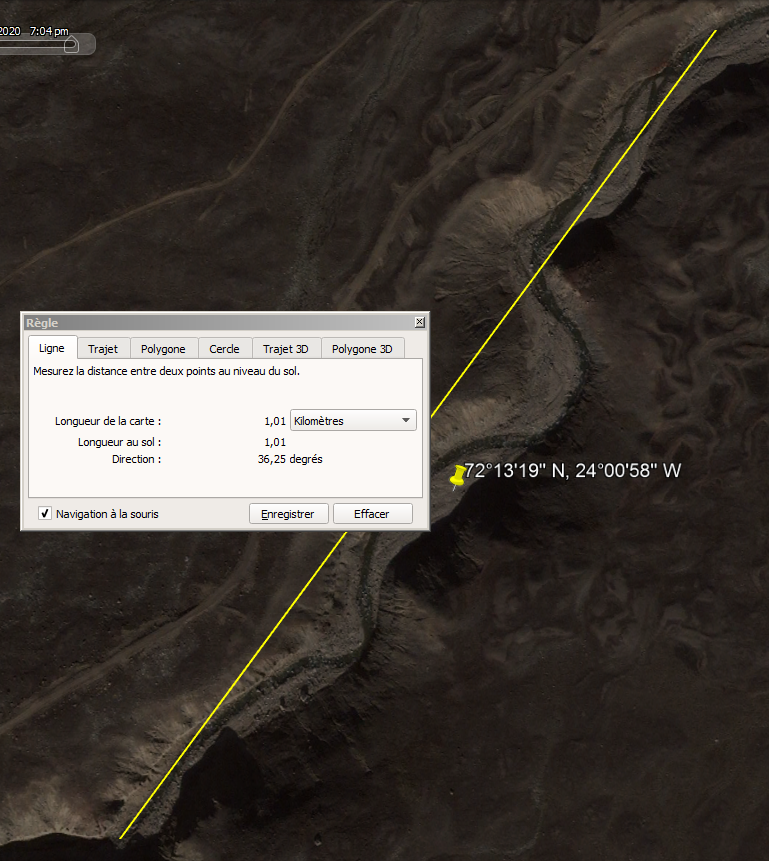 A ce sujet, je "maraude" du côté du Groenland et pense me rapprocher de la solution de mon énigme. Voir du côté de 72°13'19'' / 24°00'58''. Une ressemblance troublante... Je chauffe !