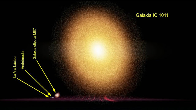 IC 1101 (réponse de Patte) à 2000 x la voie lactée, d'après le wiki anglais.