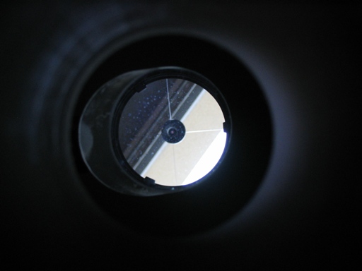 Le miroir secondaire n'a d'ailleurs pas besoin d'être en face du porte-oculaire pour que ce soit collimaté. S'il est légèrement décalé, on perdra peut-être un peu de lumière, mais on peut l'orienter convenablement. Par contre, ça peut tromper l'utilisation d'un laser ou d'un oeilleton. En tout cas, je ne crois pas qu'il faille se préocupper de démonter des trucs, vu que ça se trouve tout va bien.