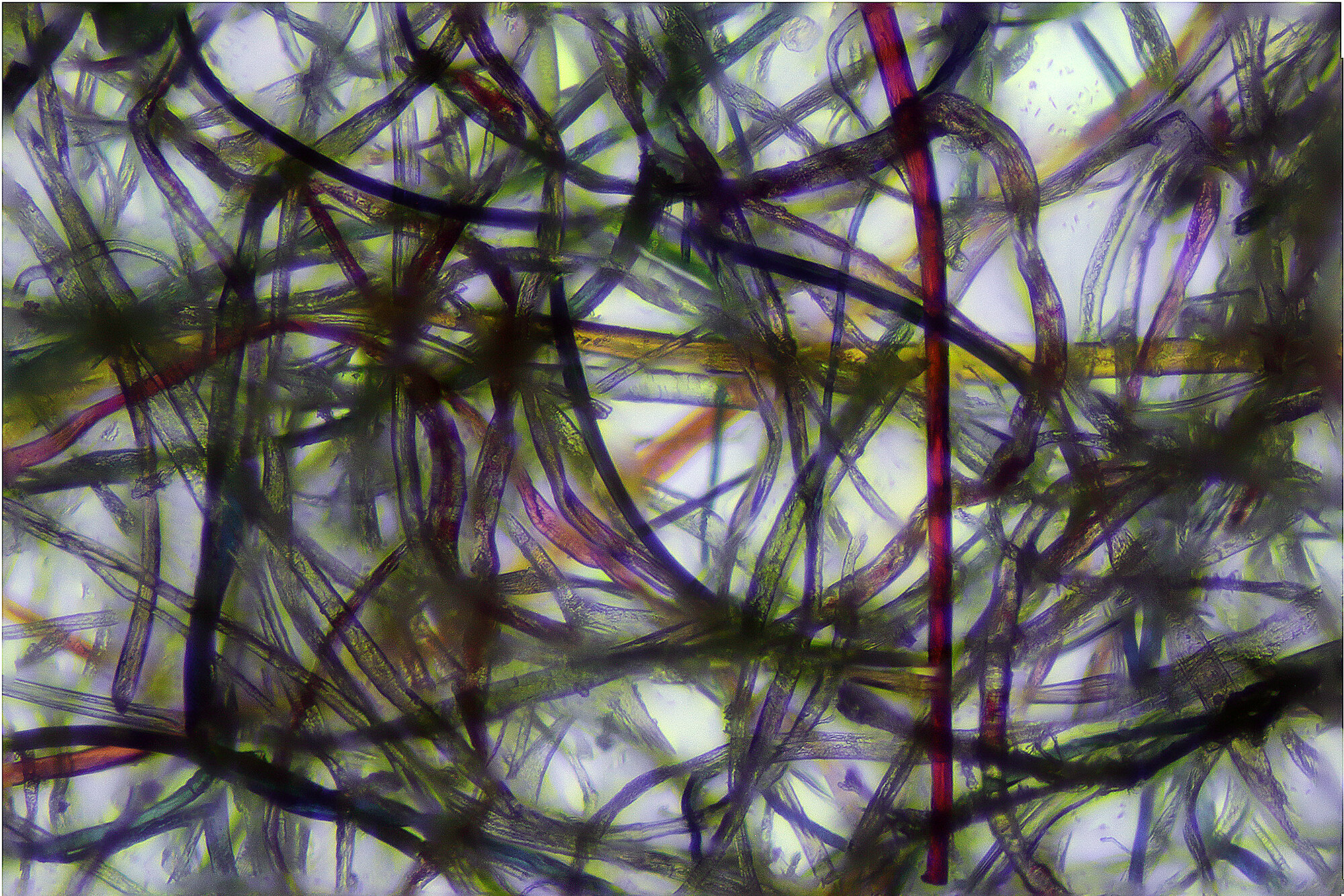 Voici une partie d'un mouton de poussière (oui, il faut que je passe l'aspirateur dans mon bureau :) ) que j'ai mis sous lame :