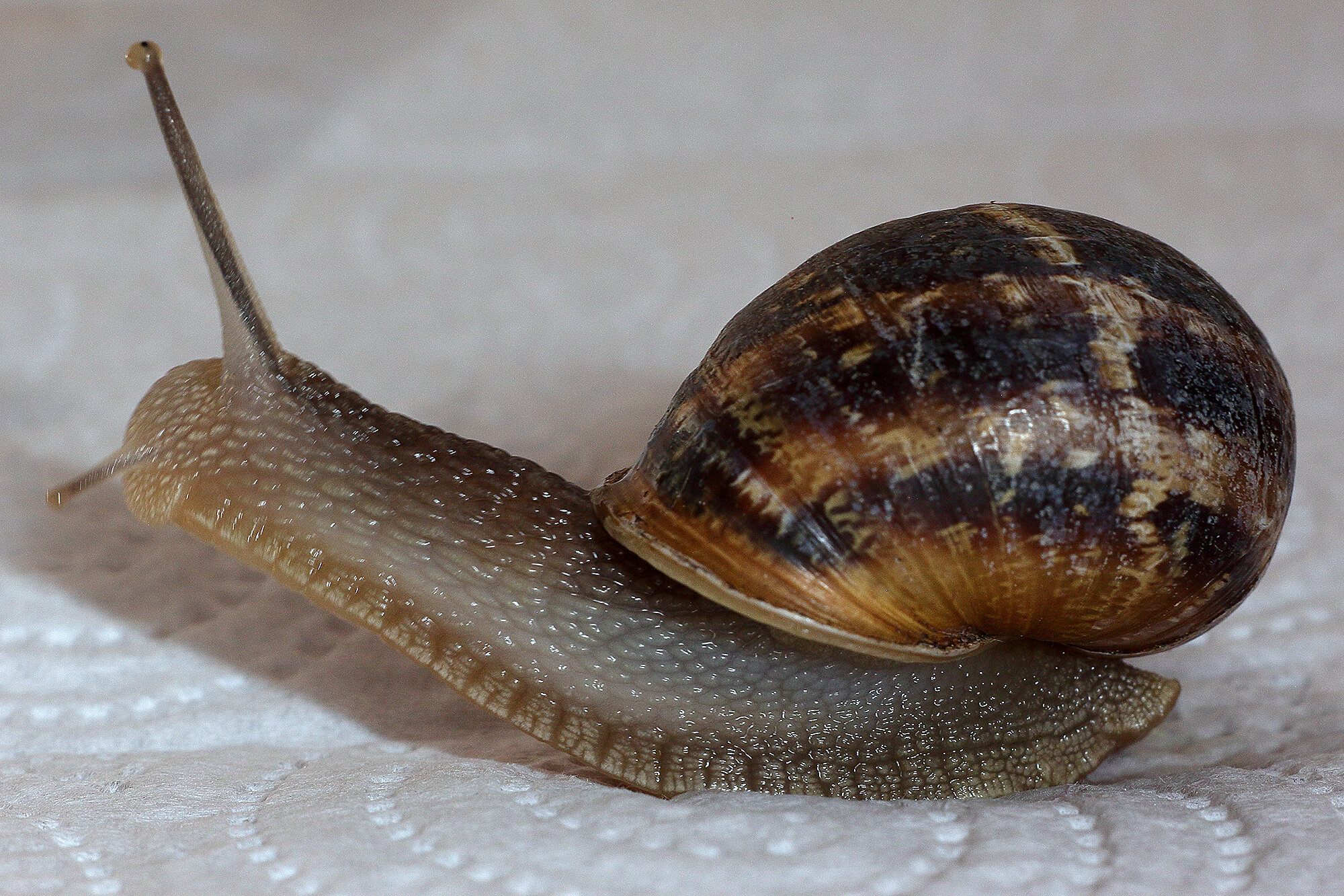 Pas de staking puisque évidement l'escargot bouge raison pour laquelle le premier plan de la coquille est moins net et c'est tout de même moins facile à prendre en photo quand ça bouge même si l'escargot bouge il est vrai doucement. A peine je faisais un réglage qu'il avait bougé ou rentré un œil et avait avancé de quelques millimètres.