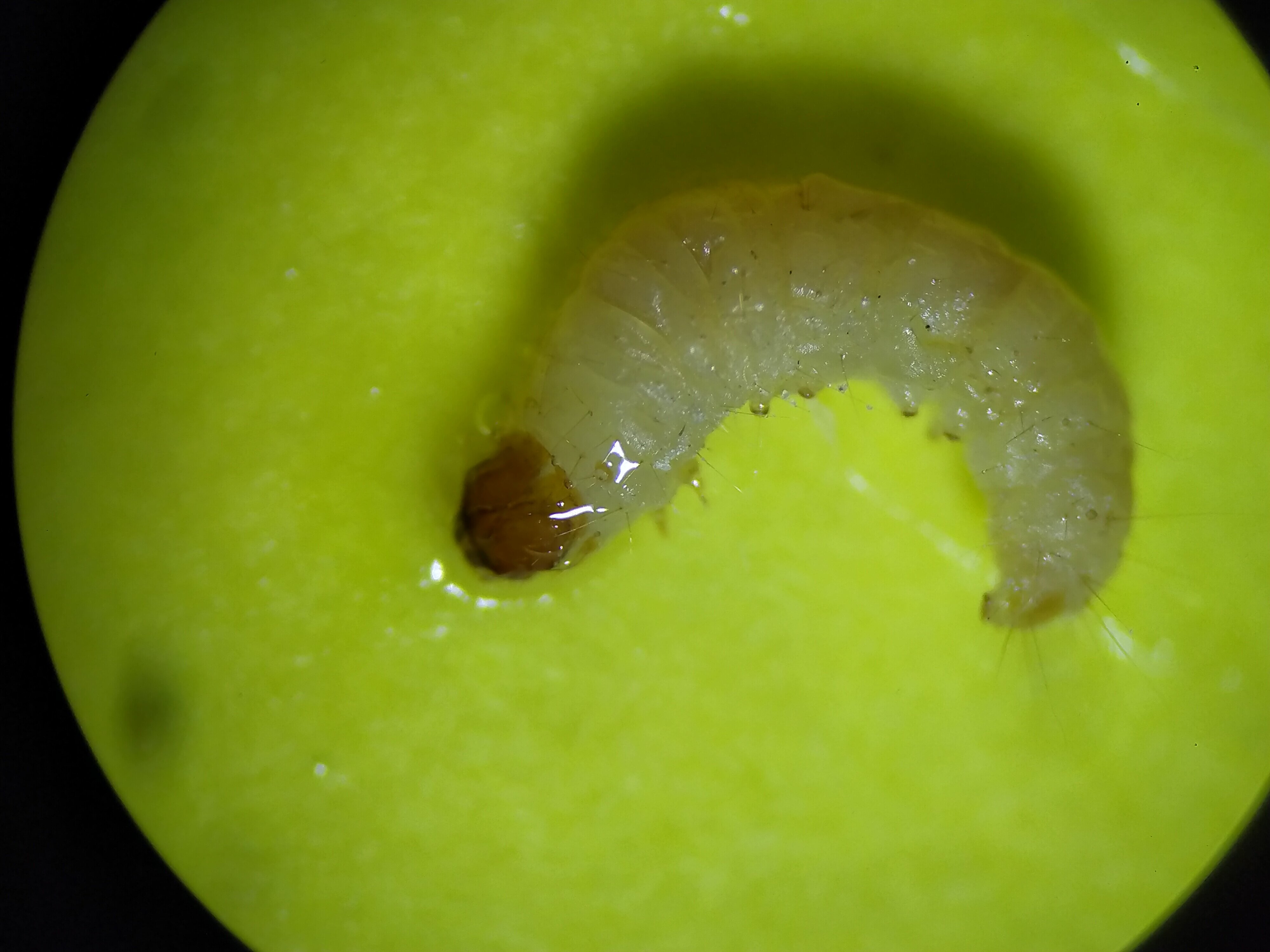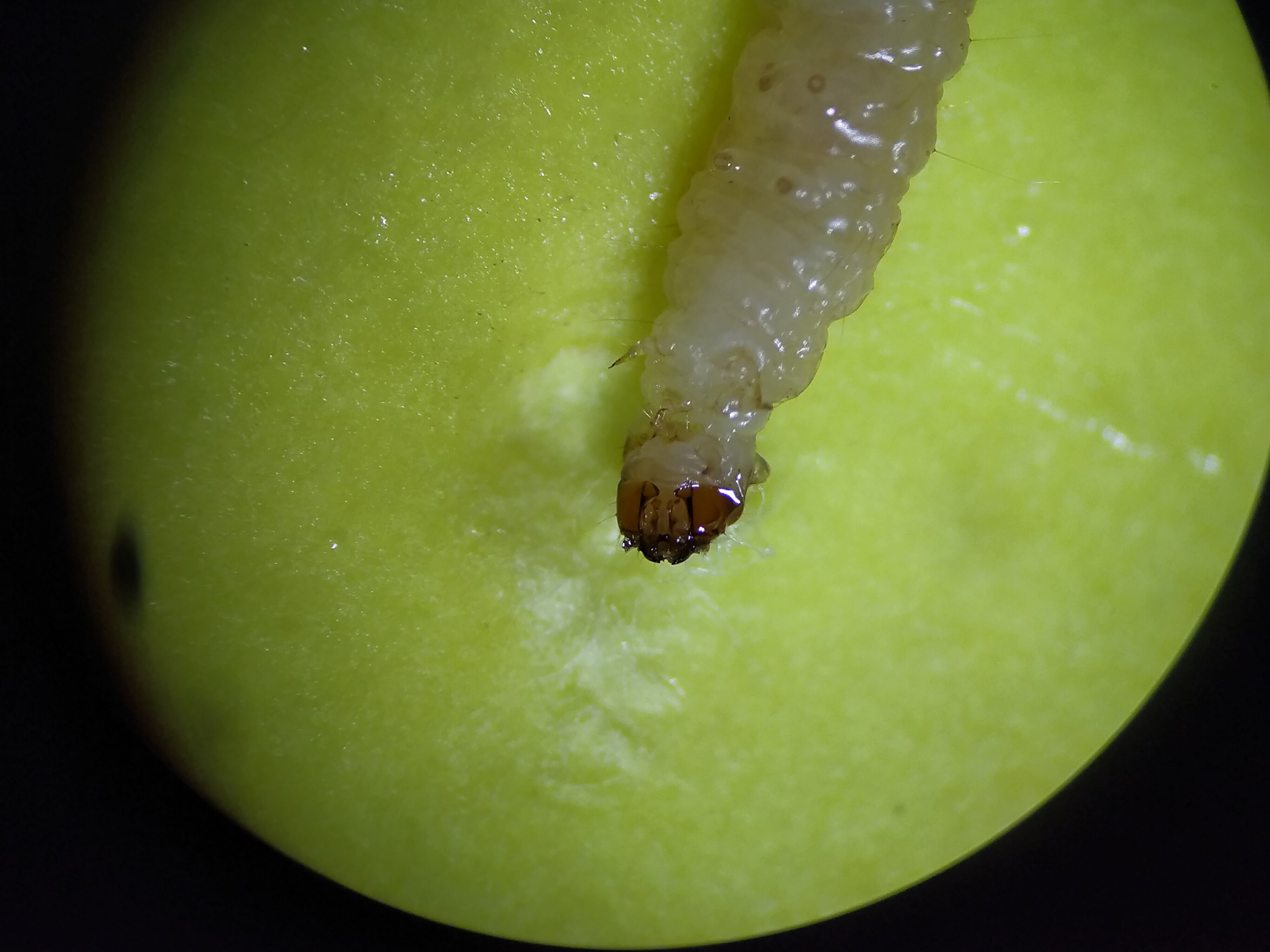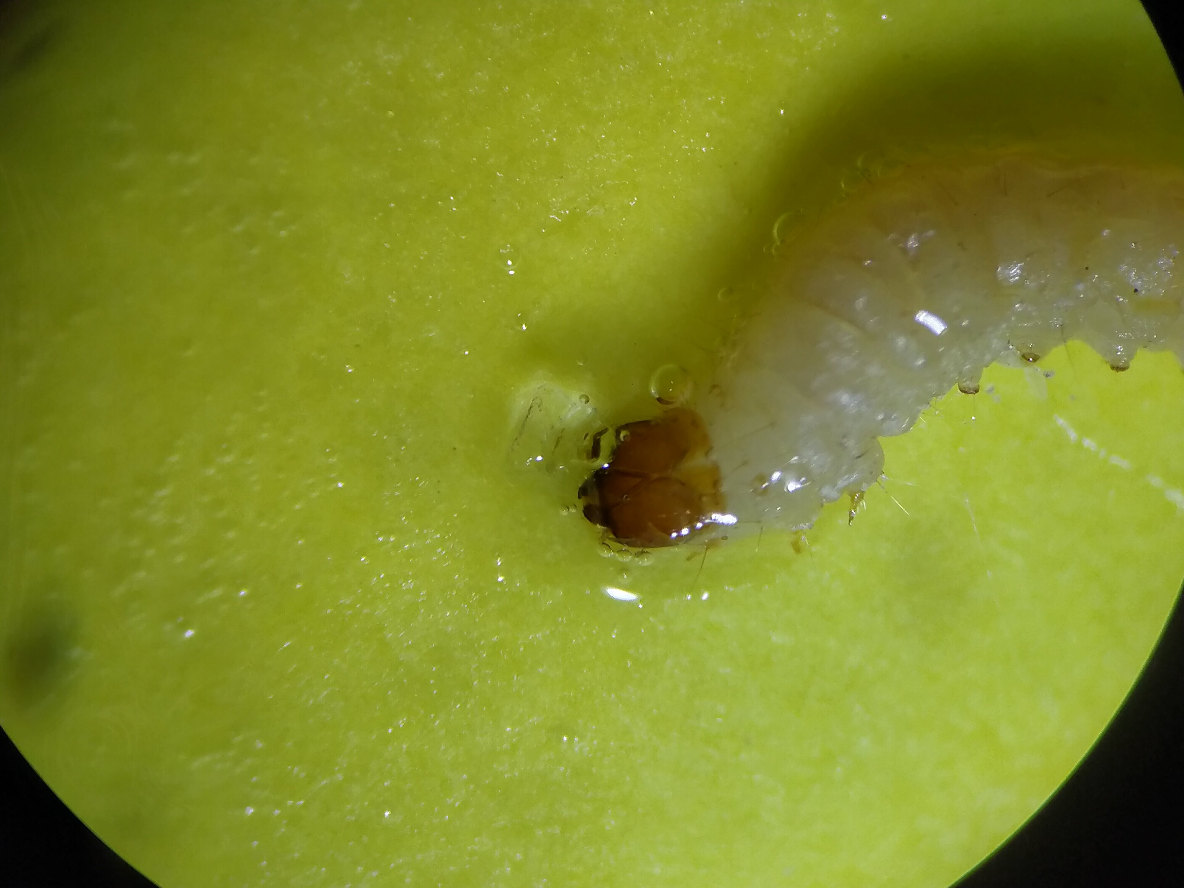 Très belles images Vakoren de ce petit ver dans le fruit .