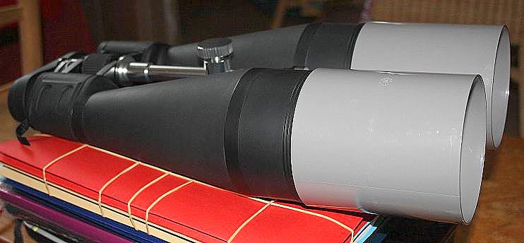 Les manchons font 115mm de long, il s'emboitent de 30mm sur les jumelles (j'ai collé trois petites cales à 120° à l'intérieur pour faire butée,il y a même un petit trou de 2mm, évent pour remettre les bouchons;)).