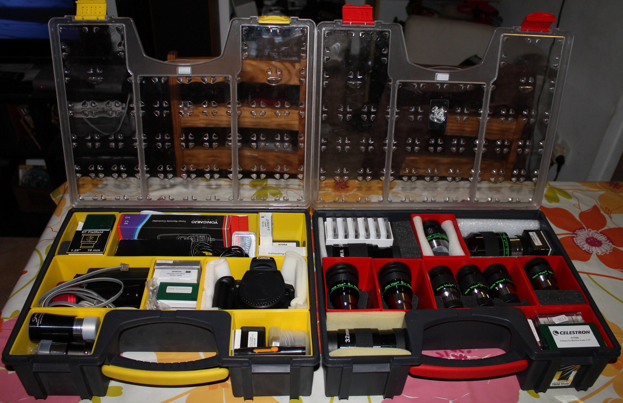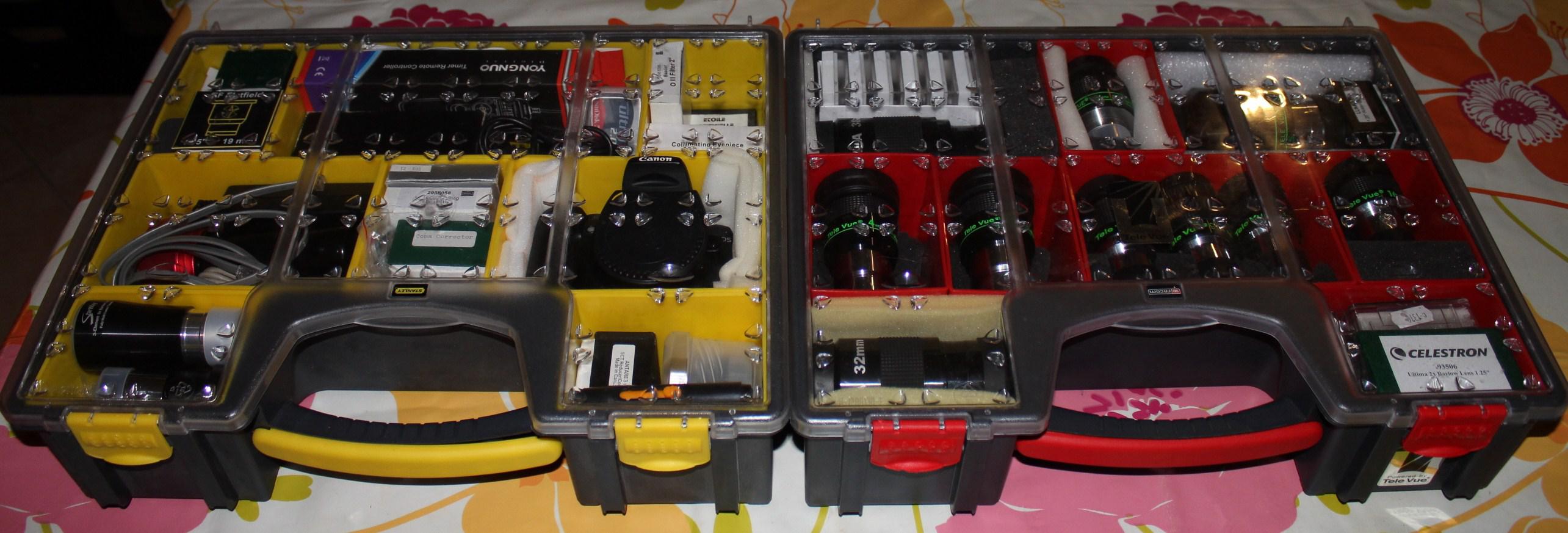 trouvées à casto pour la rouge (Facom) pour le visuel, et à Point P. la jaune (Stanley) pour l'equipement photo. Ce sont exactement les memes... Payées respectivement 25 et 30 euros. j ai bien aimé et trouvé pratique la profondeur et les boitiers modulable avec des bonnes tailles adaptées à la taille des oculaires!