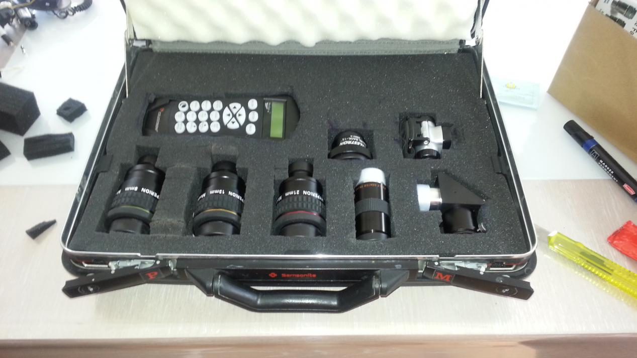 D'où une mallette contenant 8 oculaires - juste pour le 400 (je ne parle pas de la mallette pour la bino :rolleyes:). J’avoue que le 3,2 mm ne sort pas souvent mais quand les conditions sont bonnes, comme je suis heureux de l'installer...