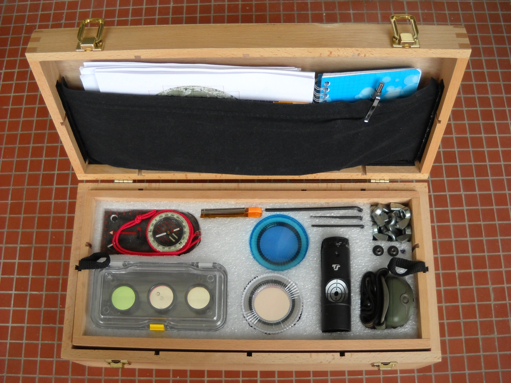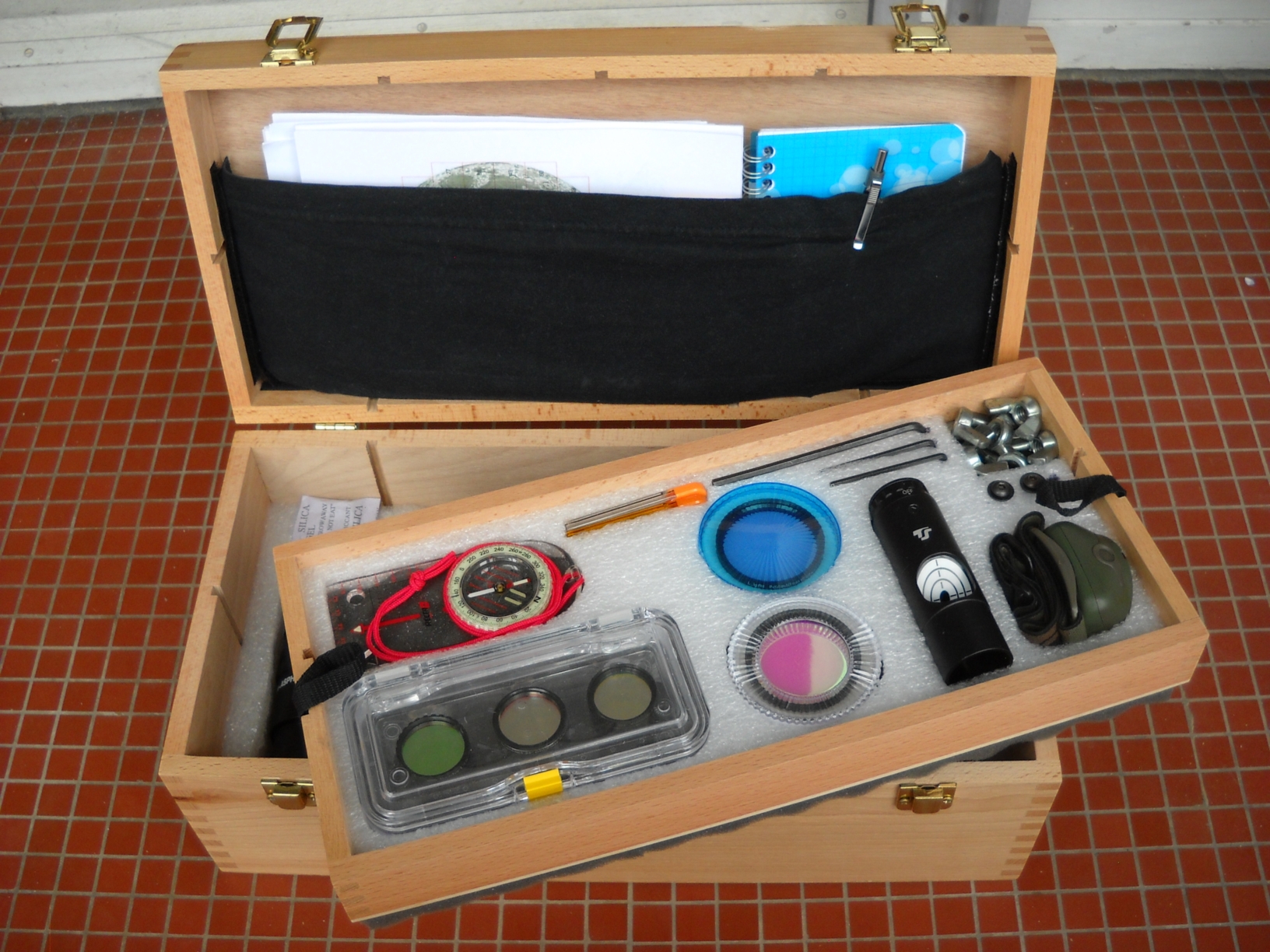 Après avoir modifié ma gamme d'oculaires je me retrouvais avec une mallette devenue trop petite. Je l'ai recyclée pour mes jumelles.