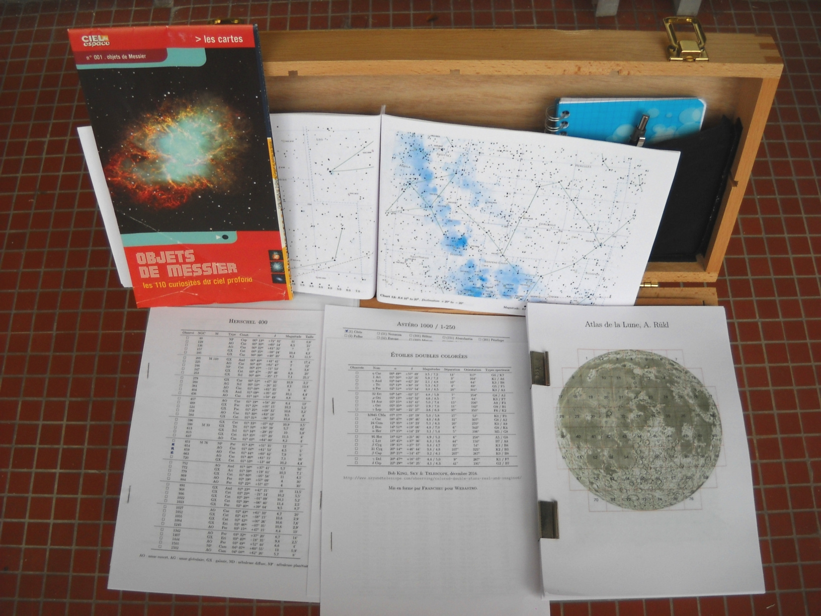 - une copie simplifiée et en taille réduite de l'Atlas de la Lune de Rükl (faite par mes soins, j'ai le vrai bouquin)