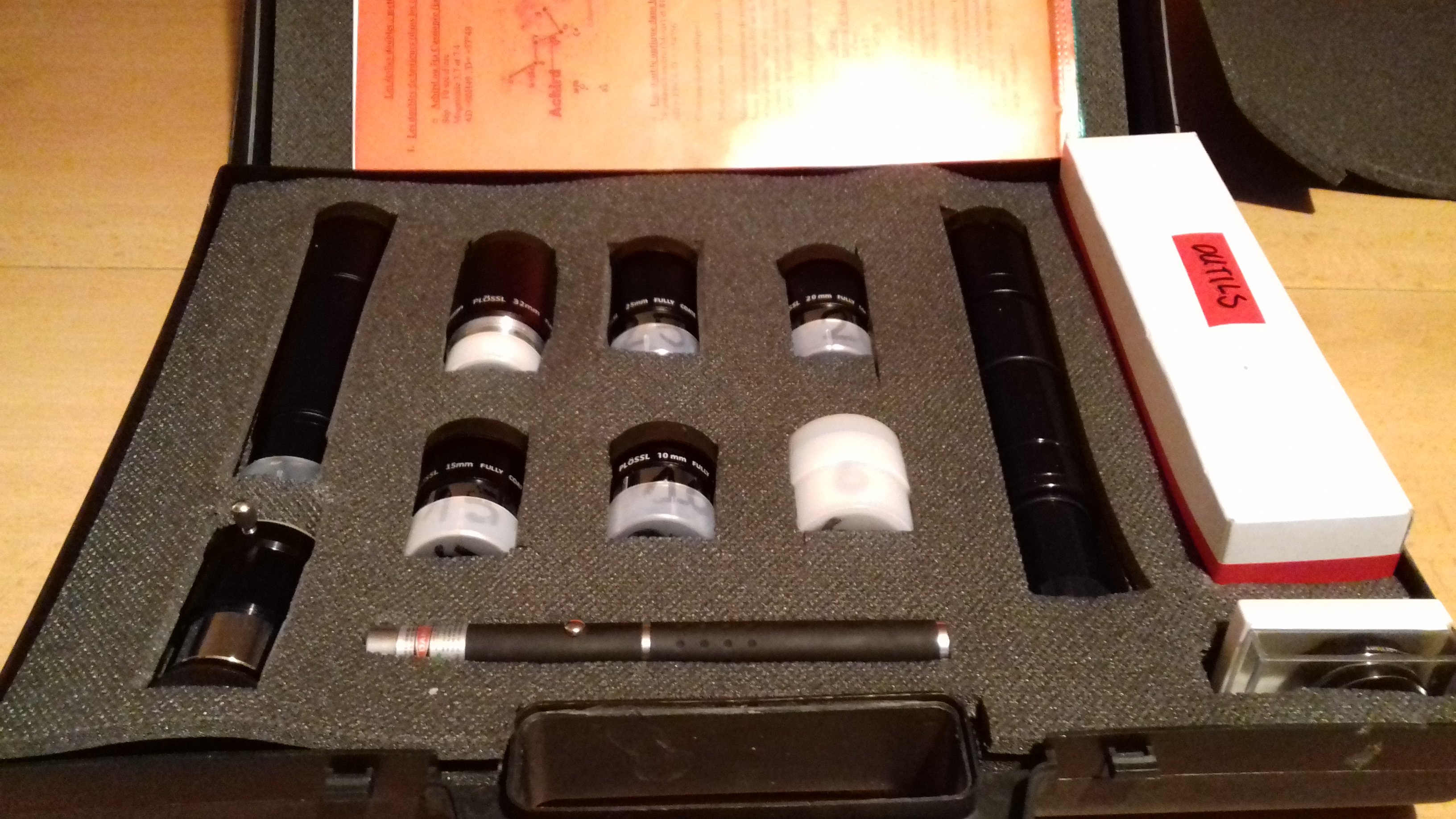 Nouvelle valise (car trop de matériel désormais) en cours de finitions. Les anciennes étaient blindées et je devais transporter en deux parties. Après toutes ces années, c'est bientôt fini, il me manque 3 oculaires dont un en route pour doubler le Morpheus 6.5 :