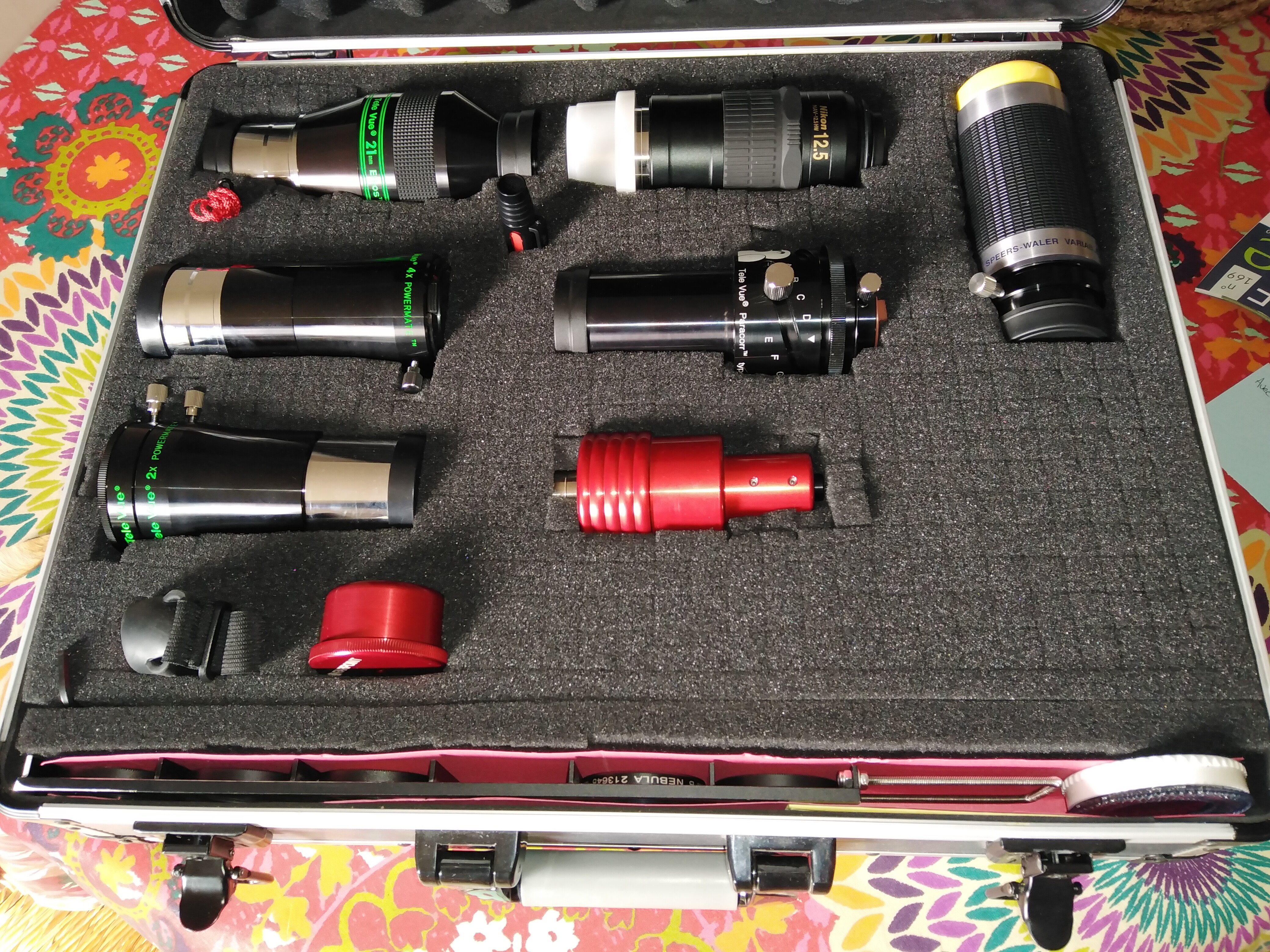 Je suis tellement content d'avoir pu finir enfin ma mallette après tant d'années de test, d'économie, de patience, que j'ai trop envie de la partager. Il m'a fallu plusieurs années pour tester beaucoup d'oculaires et trouver la configuration parfaite à mes yeux.