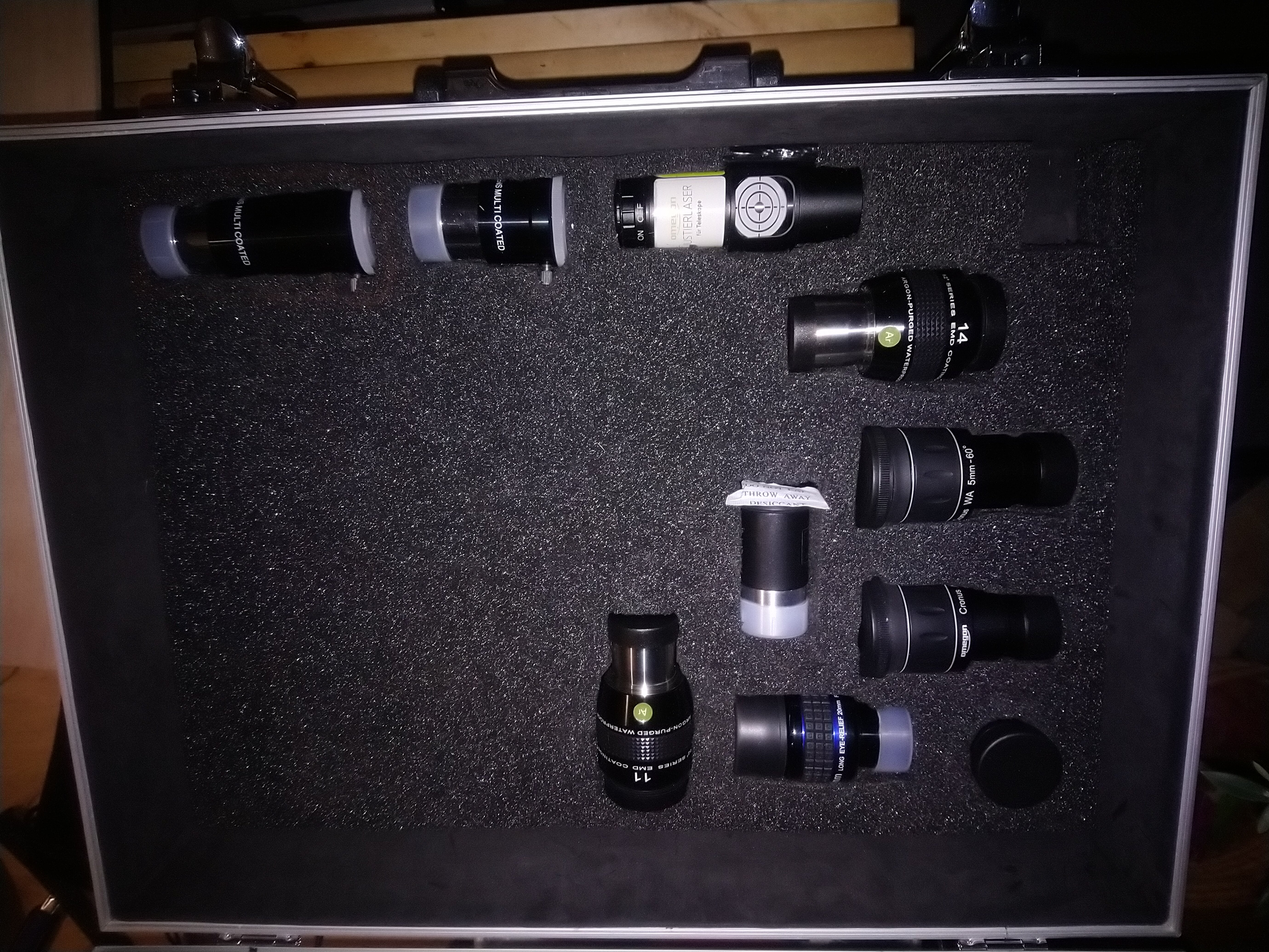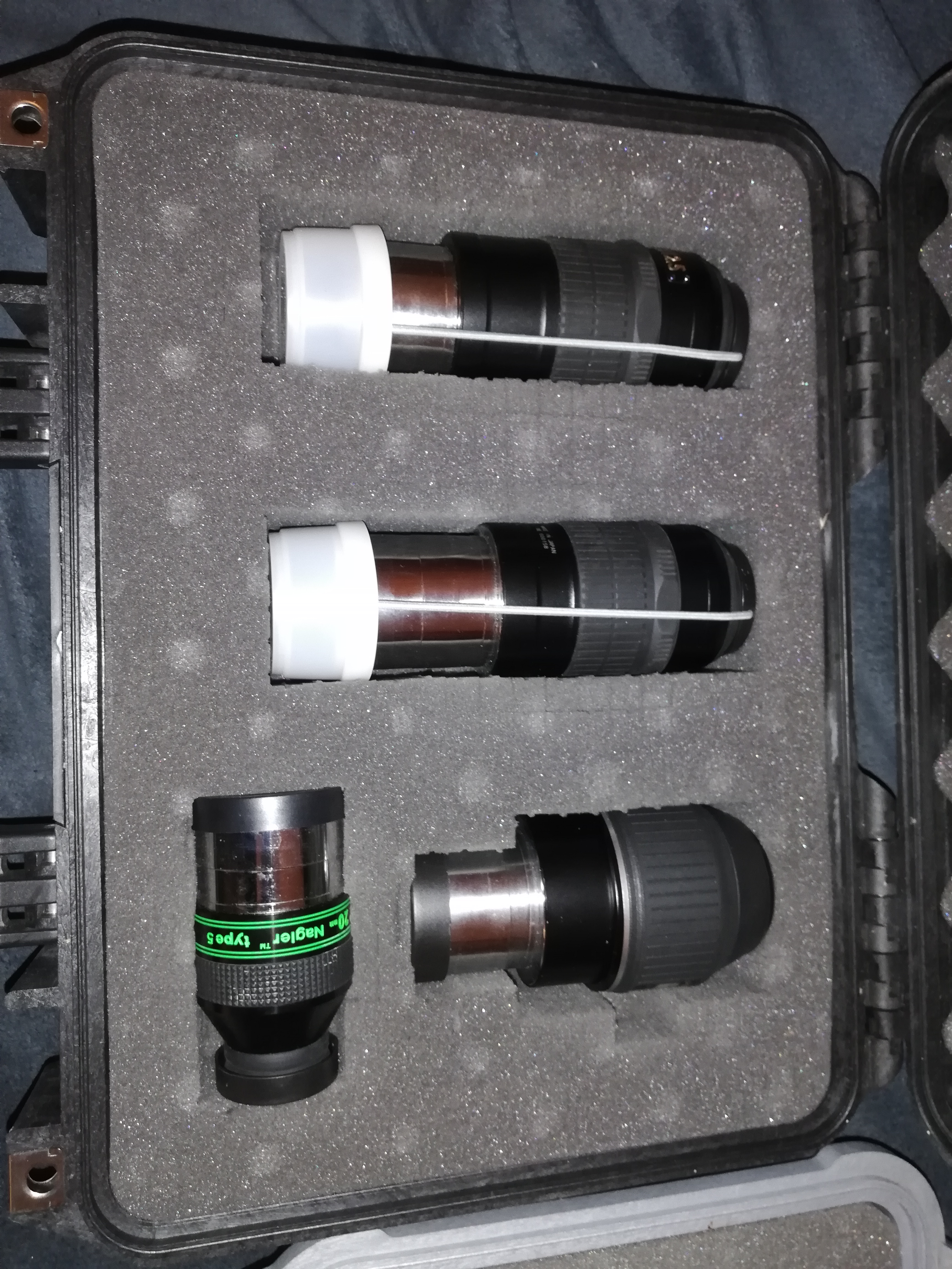 J'ai réagencé ma valise d'oculaires "Grand Champ" , j'envisage de remplacer mon 24/82° par le 25/100° (et d'ajouter le 12/92° pour me faire plaisir j'avoue, car je couvre déjà largement le panel de grossissements) 😉