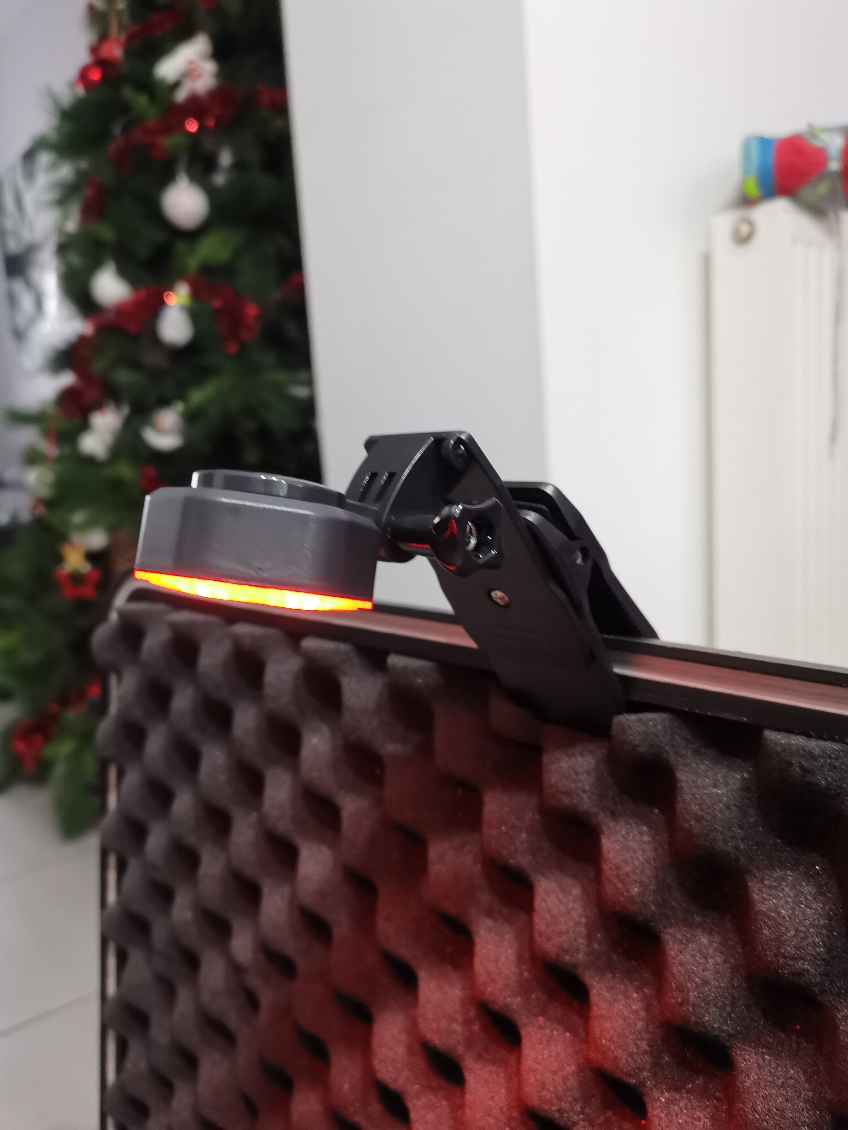Une photo de la lampe sur sa pince: