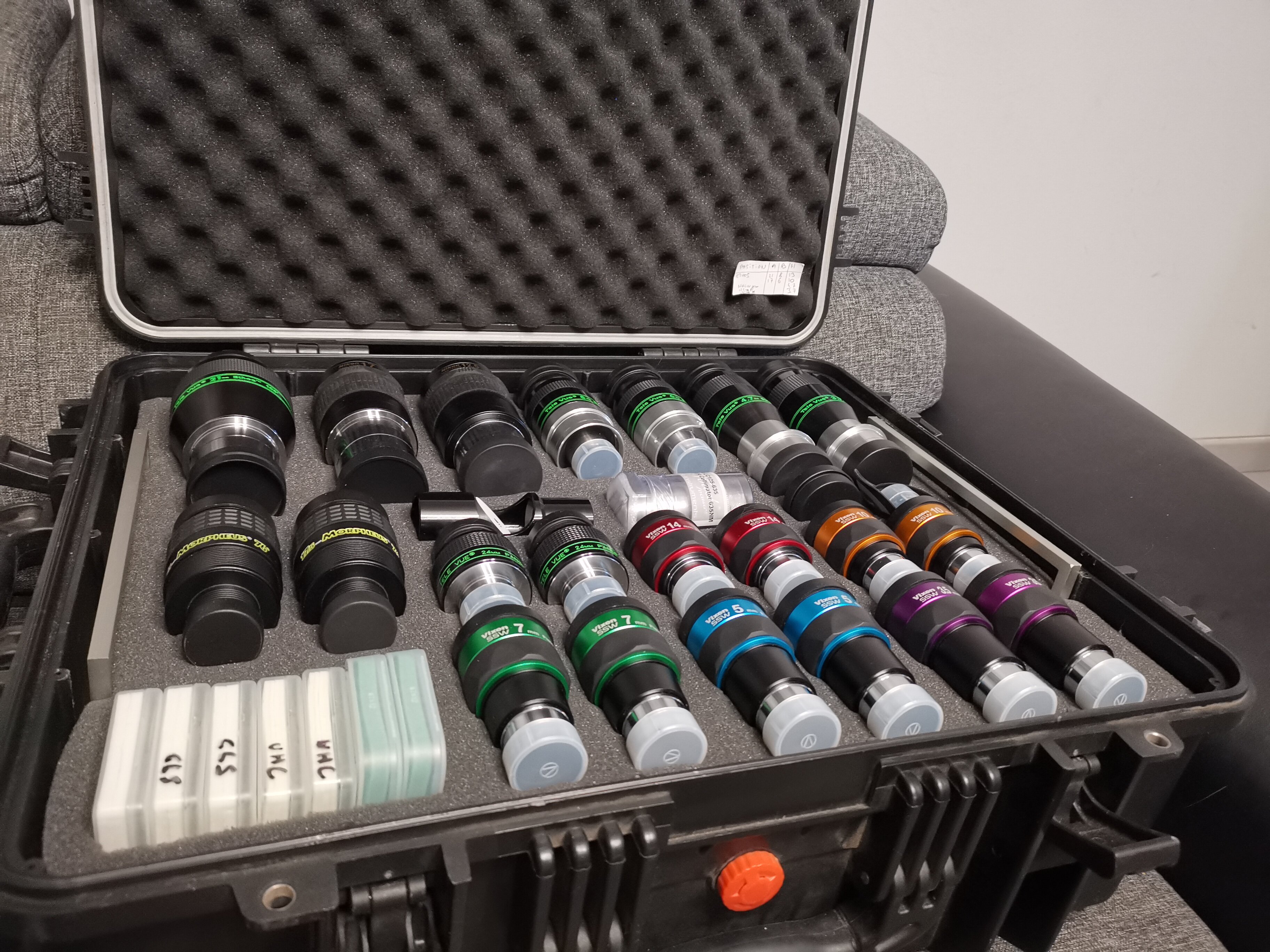 Voilà de bien belles mallettes d'oculaires . Je remarque que celle de subwoof est bien rempli d'oculaires. Il est fan des vixen à ce que je vois.