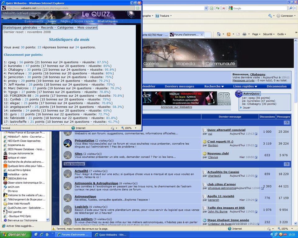 Robton kob est pour le moment toujours premier du quizz Webastro d'octobre 2010.
