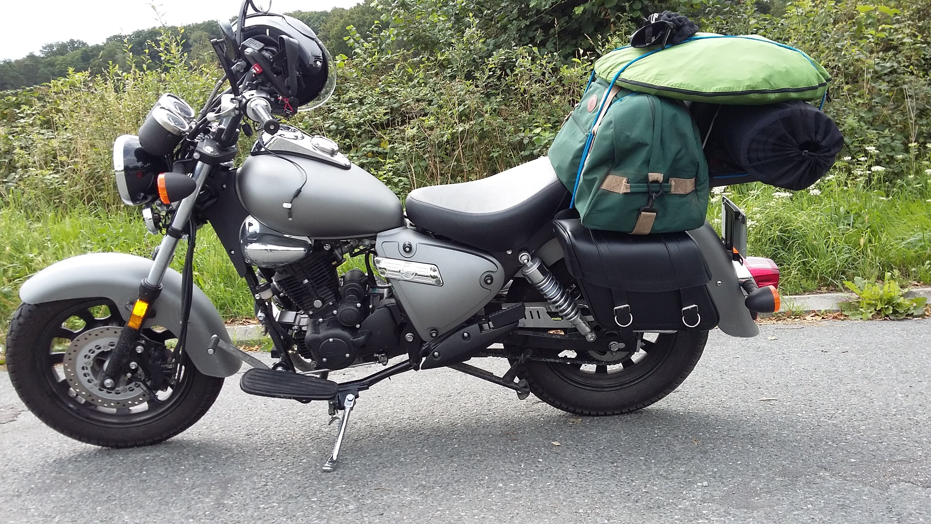 J'attends encore casque, gants, bottines puis surtout les pneus qui vont bien dans le région, par exemple Michelin Tracker avant d'en profiter pleinement (après rodage).