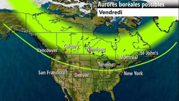 Si des aurores sont visibles en France, ça serait probablement le vendredi soir à la tombée de la nuit.