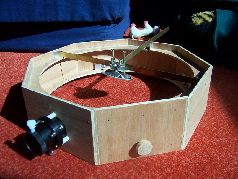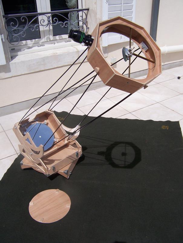 Je dois encore fixer les patins de téflon et coller le cercle d'Ebony. Avant cela il faut que je perce l'axe de rotation et j'ai vu que certains le place au centre et d'autres le décale comme expliqué sur le site, est-ce que cela dépends du poids de la cage du secondaire équipée de ses accessoires et des oculaires ?