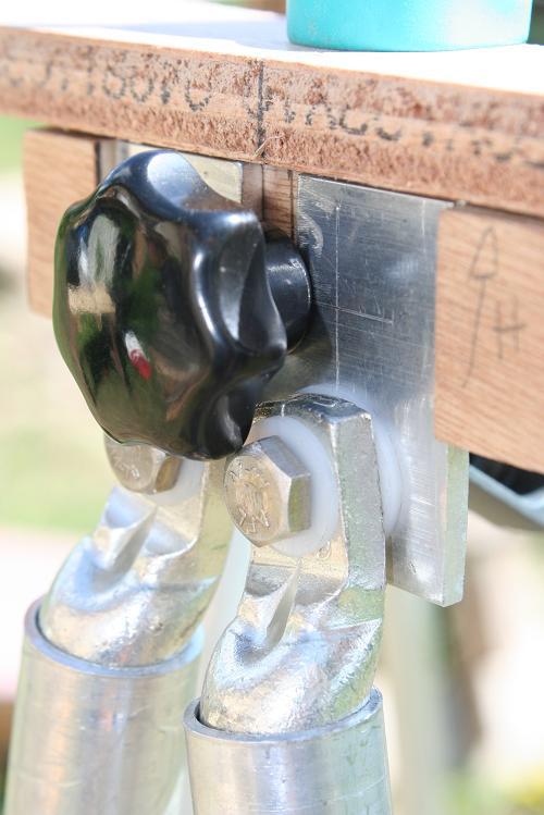 Le systeme de blocage des tubes en bas est terrible. Un petit tour de molette à peine et zou serré ! suffit de trouver la bonne longueur de vis et de ressort en tatouillant et en laissant du jeu là ou il faut. .
