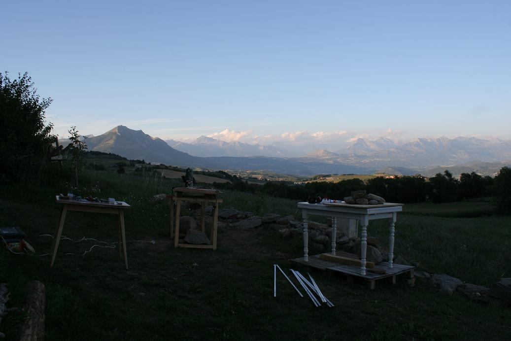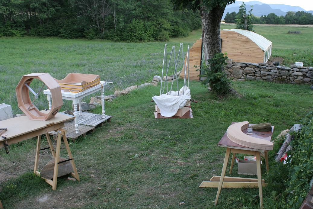 Bon faut avoir un peu de place pour un machin de cette taille pour travailler. Le beau temps étant là je suis dehors, le plus bel atelier du monde.