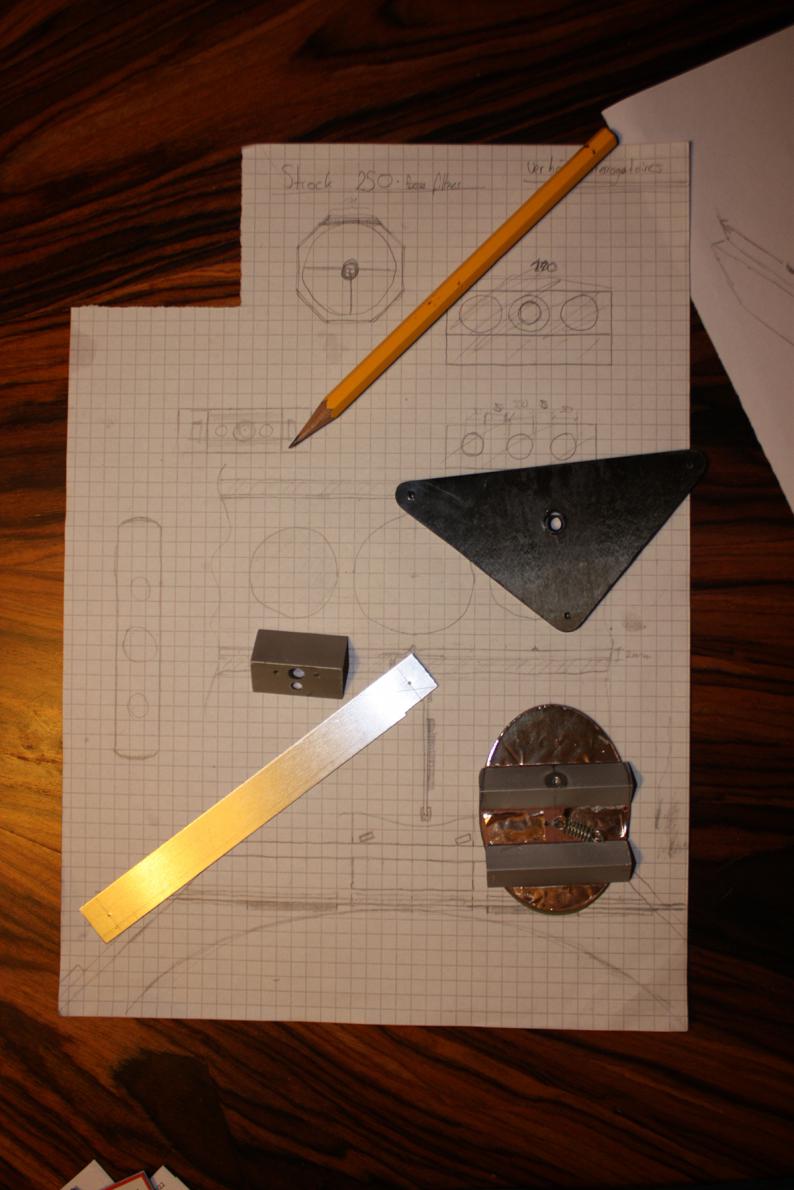J'ai déjà fait les leviers du primaire ainsi que découpé les côtés et tracé la plaque, il me faudra bientôt faire les cales