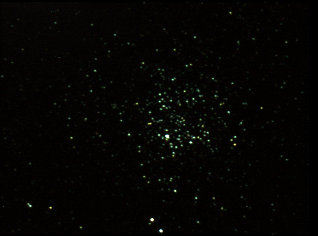Concernant les résultats obtenus, cela se cantonne à quelques prises (conditions météo en Normandie ces temps ci oblige) : la lune, une "jupiter" (et sans barlow donc franchement petite avec un 150/750), ainsi qu'un essai sur M29 puis M11 (motorisation en AD). Les résultats sont uniquement obtenus par addition d'images, n'ayant pas eu encore le temps de me lancer dans les "flat, dark et autre offset". Quant au traitement des couleurs, il faudra que je me penche sur gimp un de ces jours ...