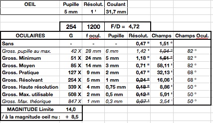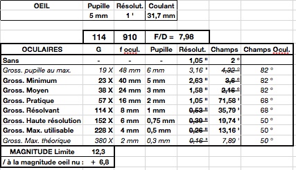 Je ne vais pas vous noyer de tous mes calculs et tableurs rassurez vous j'ai juste remarqué une chose, et je voudrais être certains de ne pas me tromper. Pour ce qui suis on ne tient pas compte de la qualité du ciel et la pupille de l'oeil fait 5 mm.