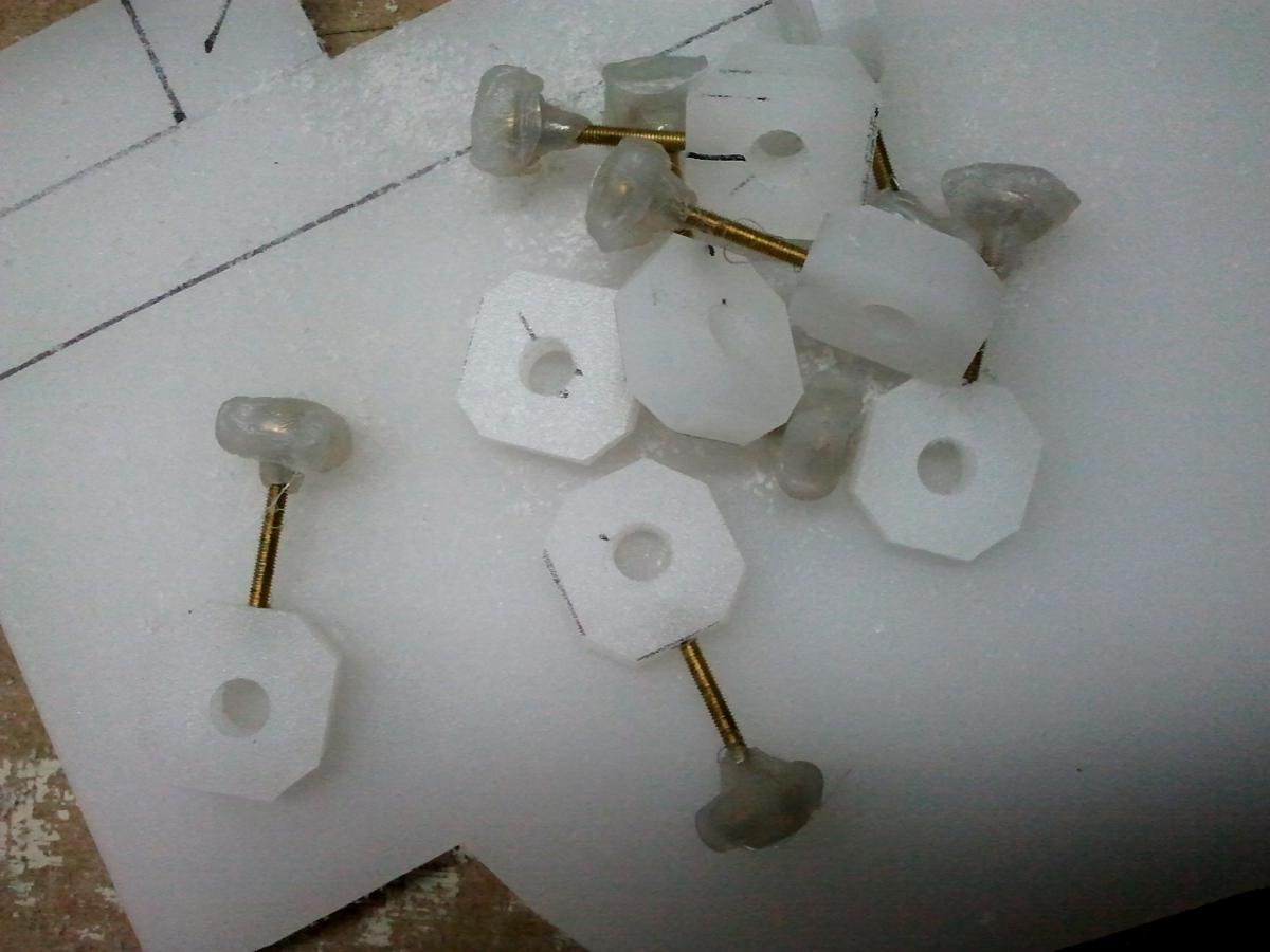 Je me suis fait dans le même matériau 8 bagues d'arrêt pour m'aider à chercher la longueur des tubes sans que ça bouge à l'installation du secondaire. Pas de vis nylon alors j'ai mis une carotte de polyéthylène dans le trou M3 avant la vis, pour éviter le contact métal/carbone.